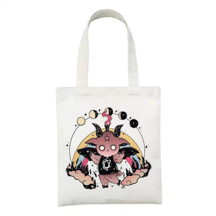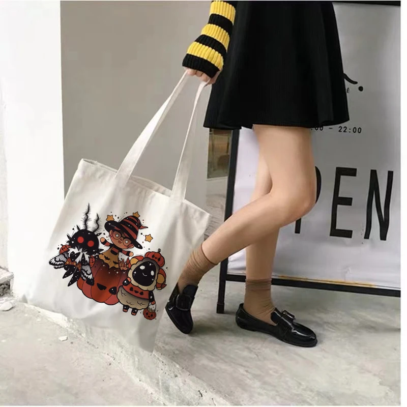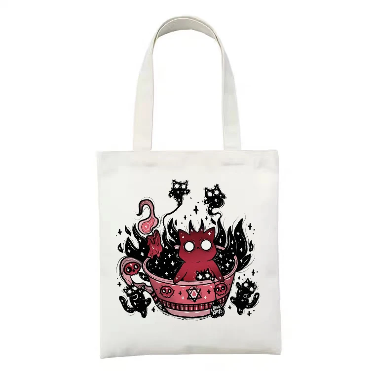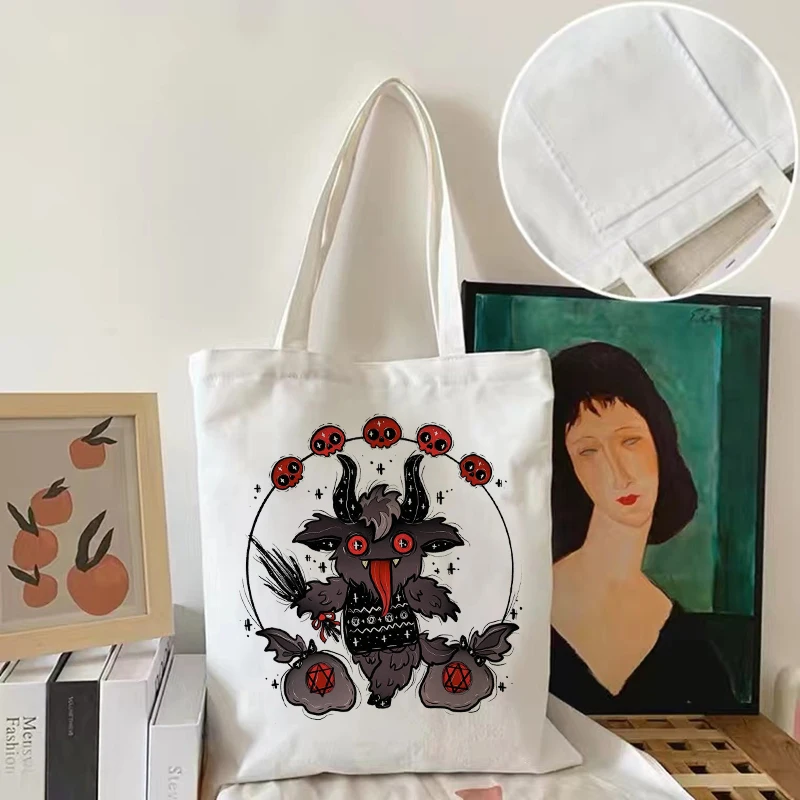 Многоразовая Женская Холщовая Сумка для покупок, модные сумки-тоуты с принтом дьявола, сумки на плечо с мультяшным принтом