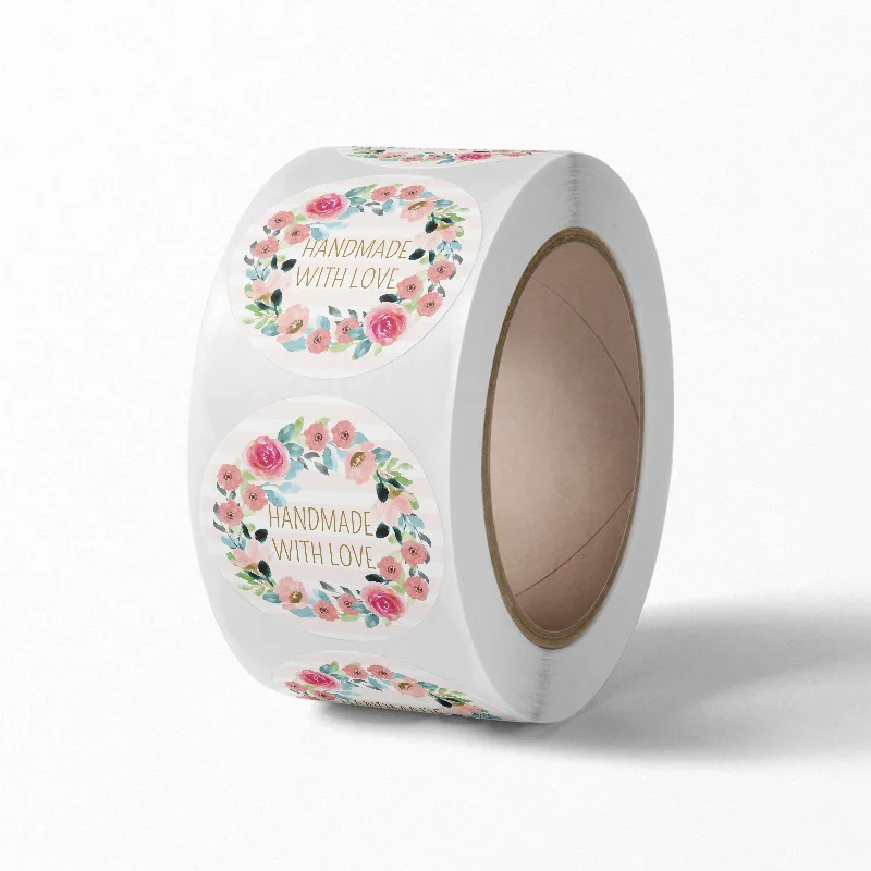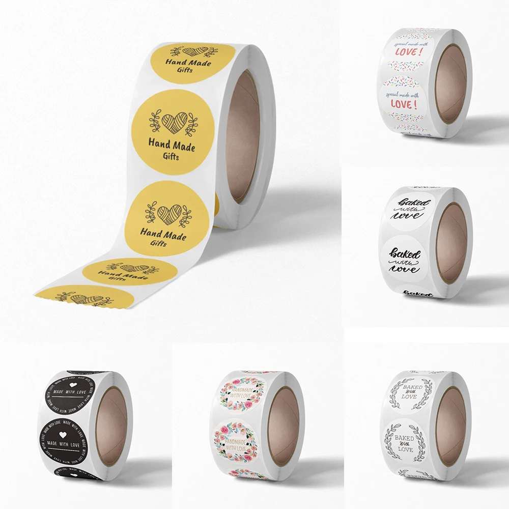 6 стилей, 500 шт.рулон, наклейки ручной работы с надписью Handmade With Love