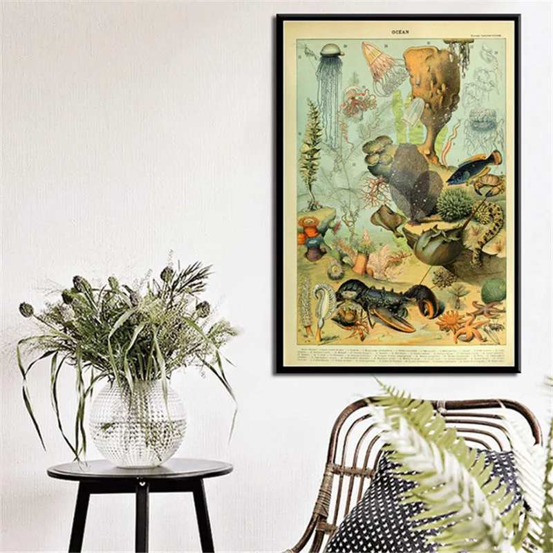 Большой абстрактный постер с красочным океаном, холст, настенные ка...