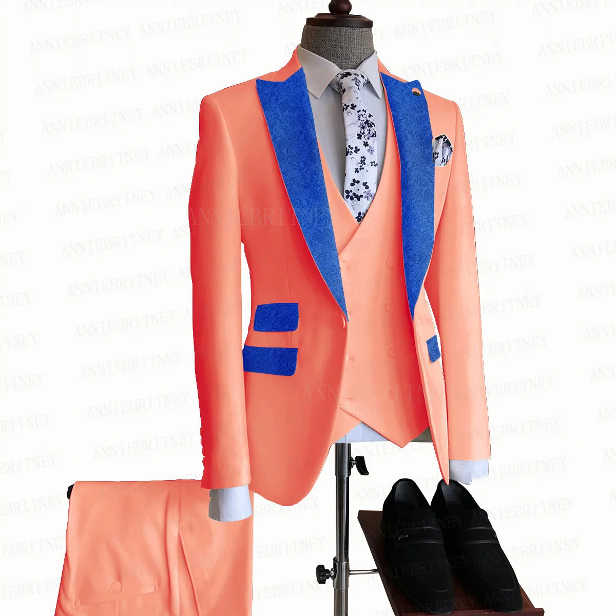 Повседневный оранжевый мужской костюм 2020, смокинг из 3 предметов,...