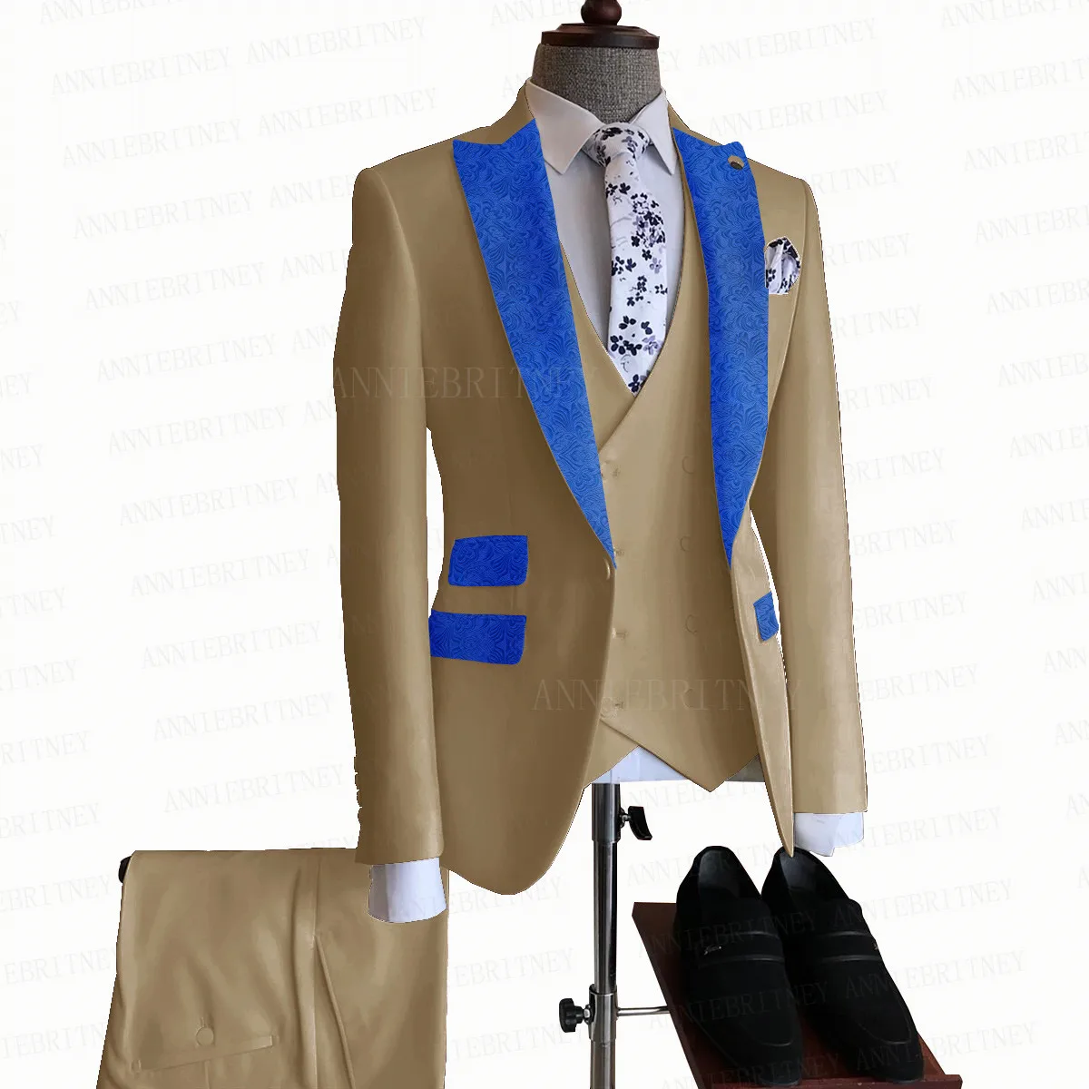 Бежевый Свадебный Мужской костюм из 3 предметов, индивидуальный кос...