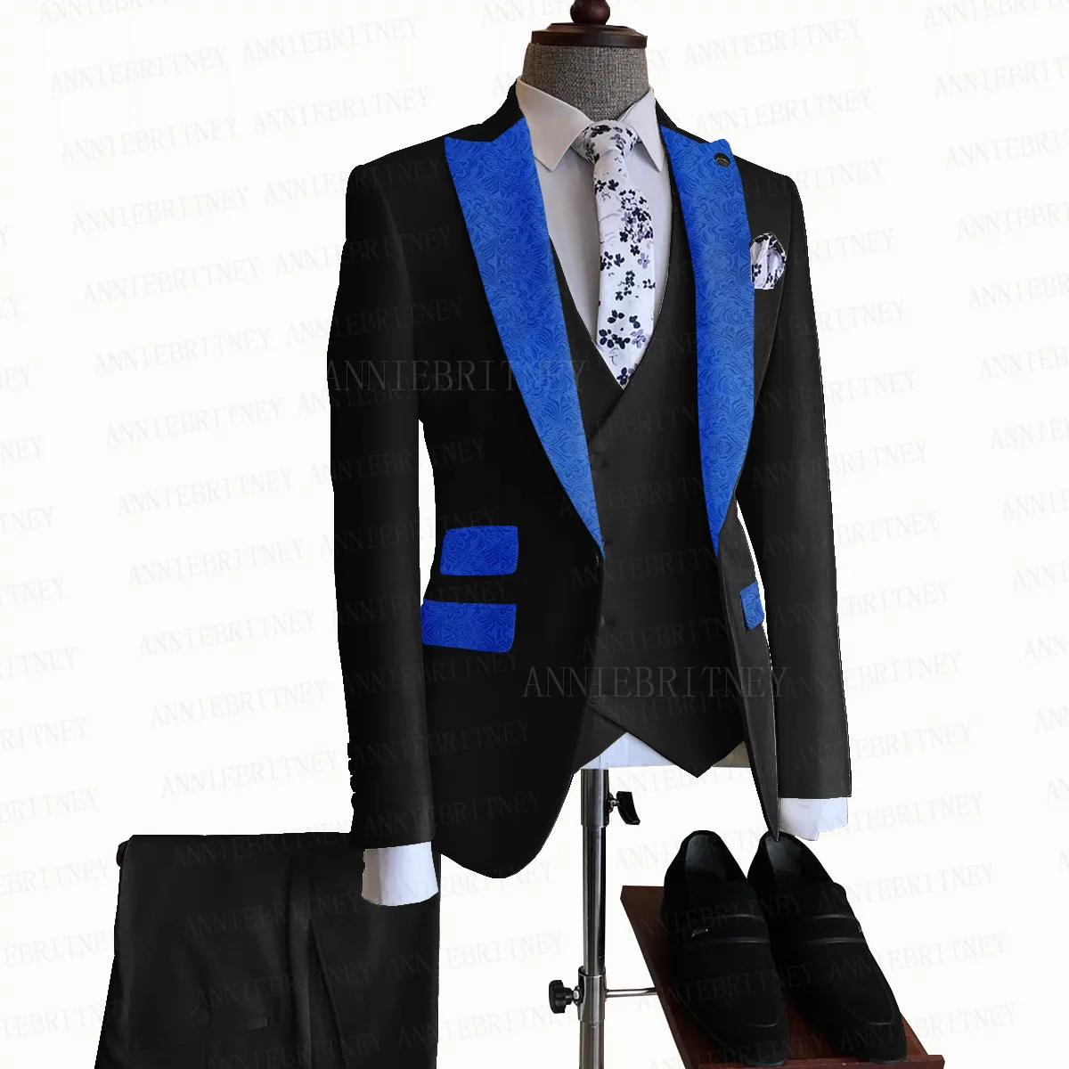 Жаккардовый костюм для мужчин из 3 предметов, приталенный пиджак, д...