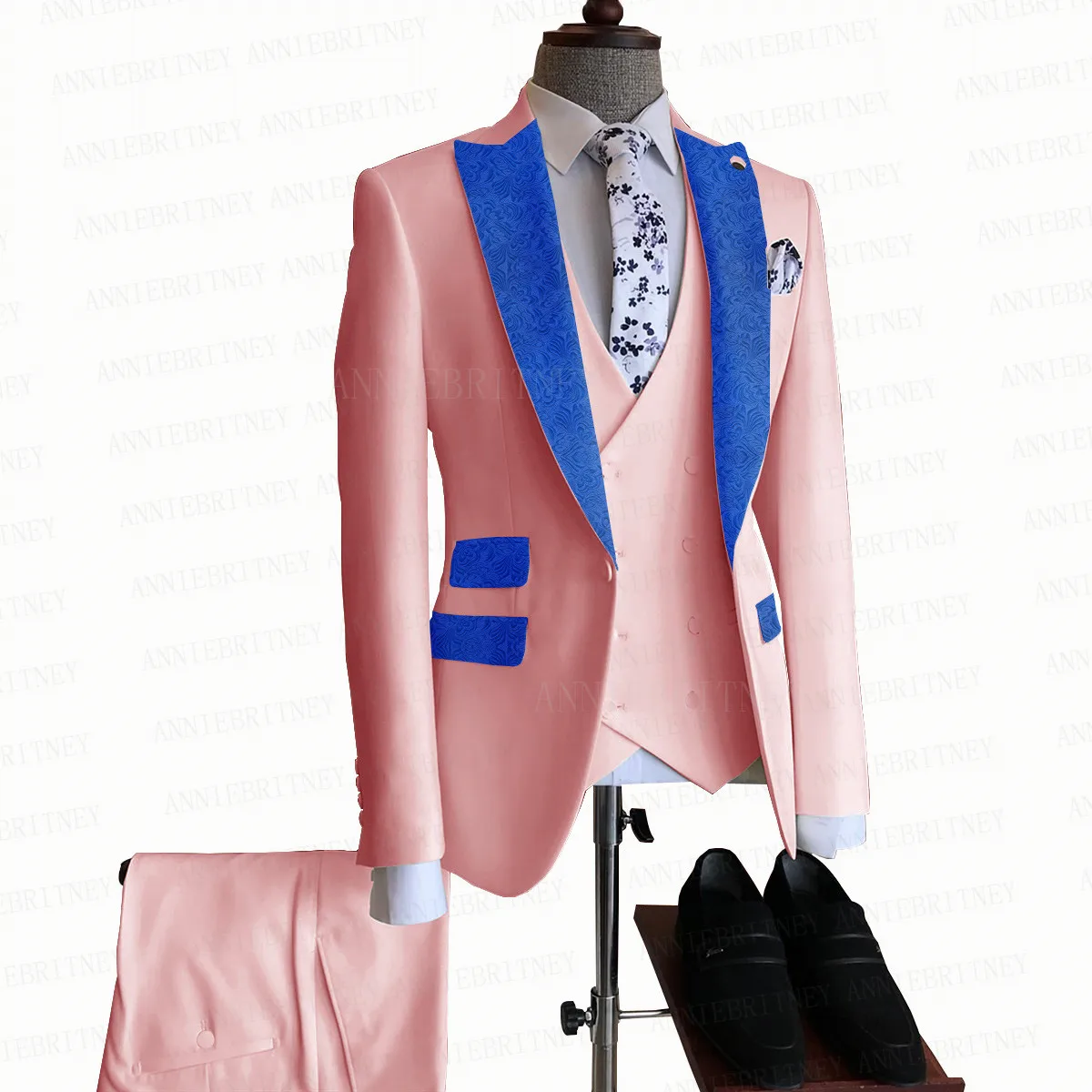 Костюм свадебный мужской из 3 предметов, роскошный розовый костюм ж...