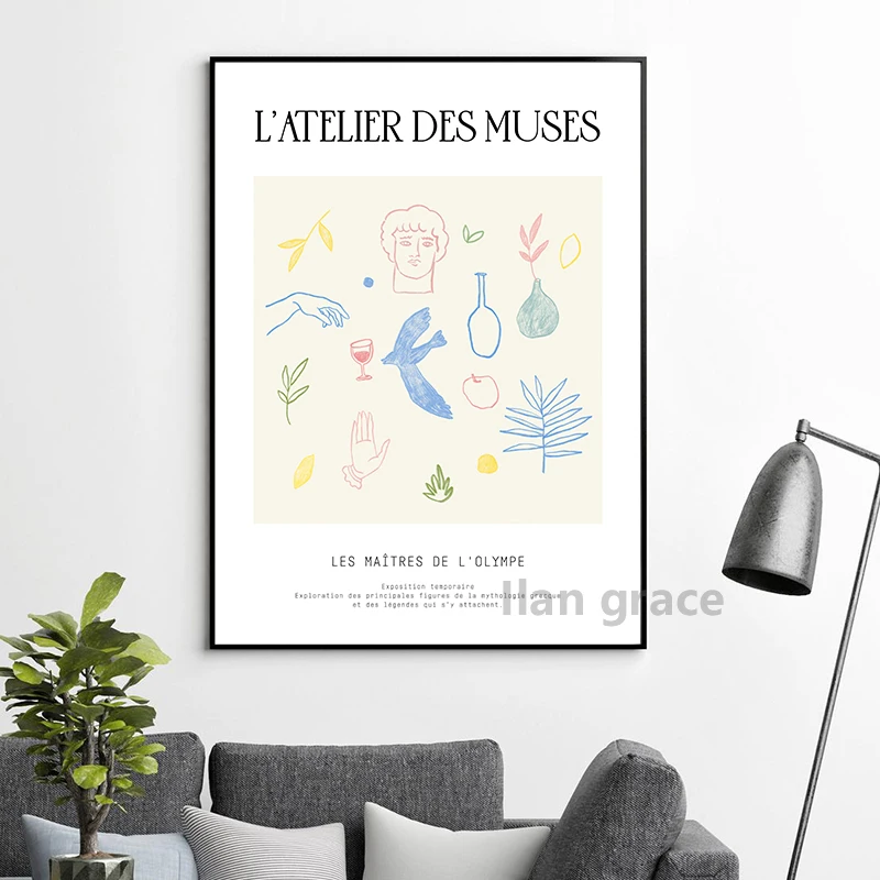 Плакаты с абстрактным изображением ГРЕЧЕСКОЙ СТАТУИ Les Muses Картина на холсте, с изображением греческой богини середины века