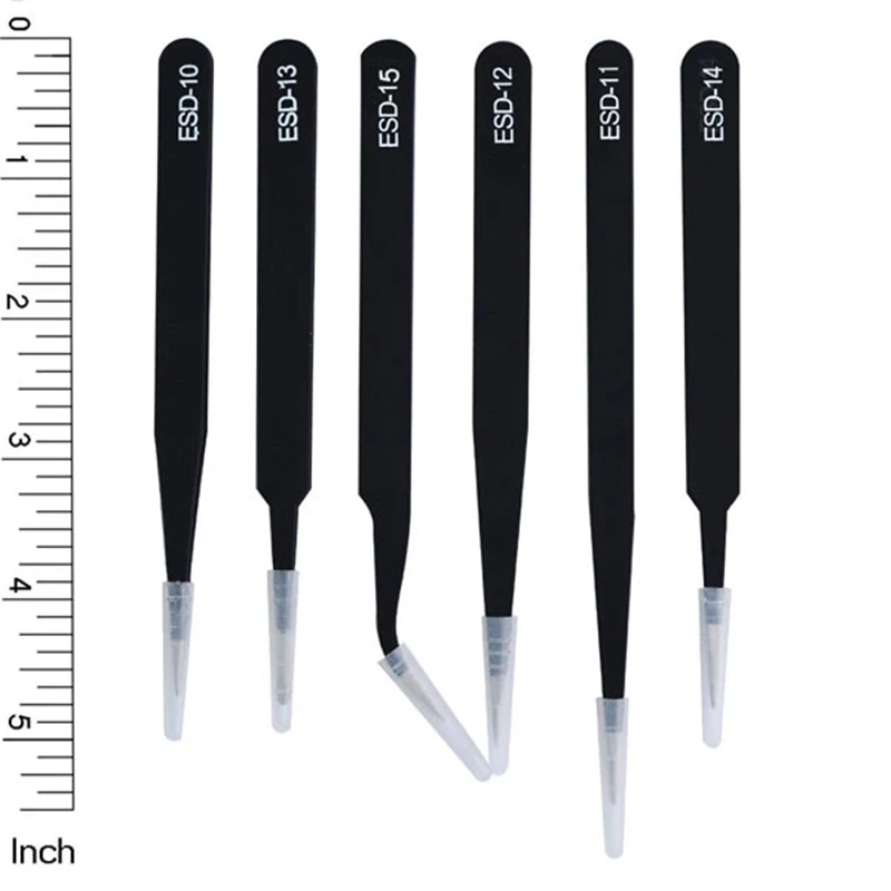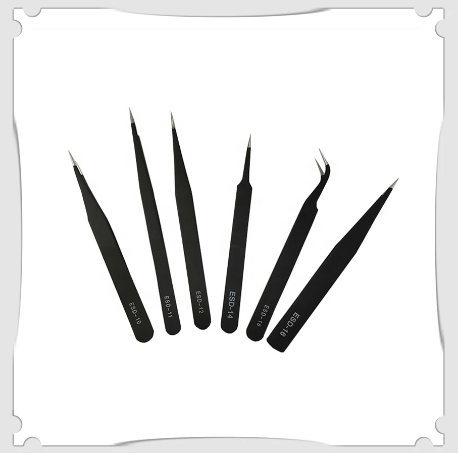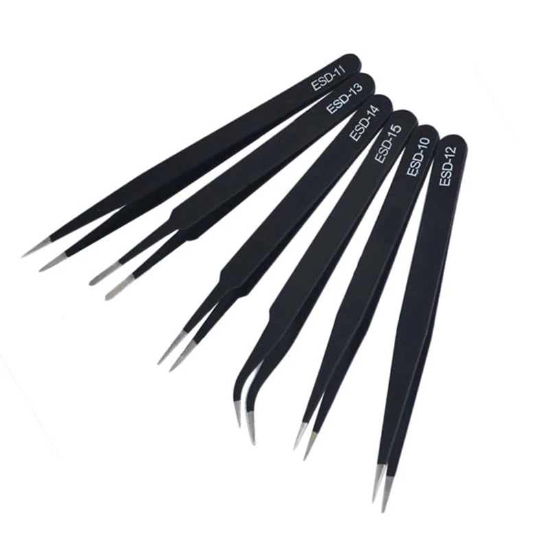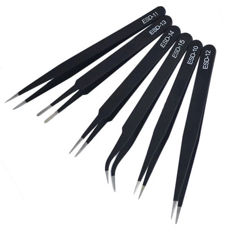 6 шт. набор антистатических пинцетов из нержавеющей стали Esd 1,5 мм Высокоточный изогнутый Прямой пинцет Многофункциональный кусачки для ремонта