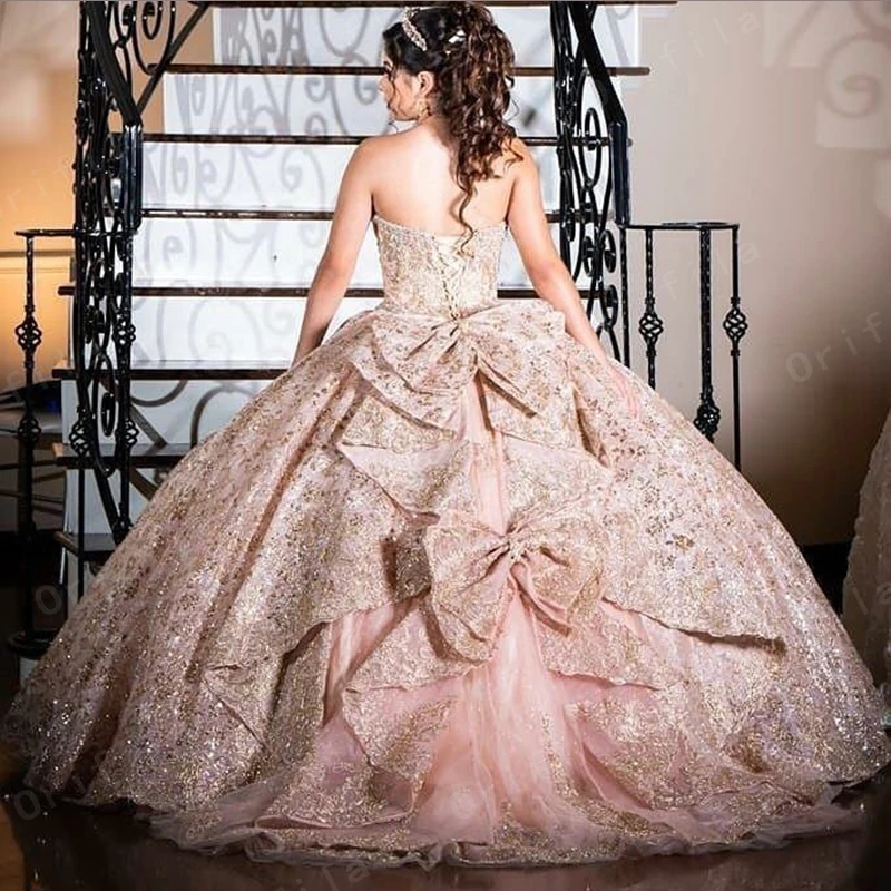 Розовое Золотое блестящее бальное платье, платья для Quinceanera со...