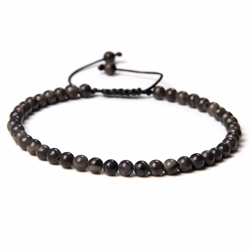 Плетеные браслеты из натурального камня 4 мм, лазурит, Агаты, кошачий глаз, мини браслеты из бисера для женщин, мужчин, медитация, рейки, ювелирные изделия, подарок