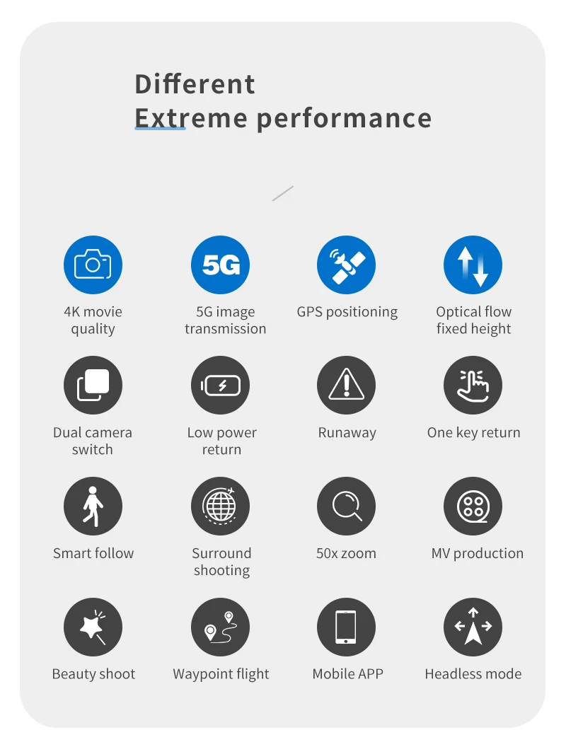 Функция: качество видео 4k, 5G передача изображения, позиционирование GPS, фиксированная высота оптического потока