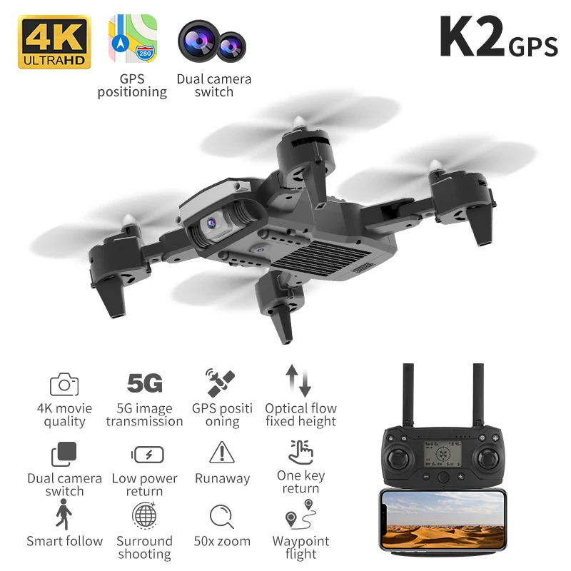 Новинка 2021, Квадрокоптер K2 с GPS, 4K, профессиональная камера, портативный Дрон с Wi-Fi, автоматический двигатель для обхода препятствий, бесщеточный Радиоуправляемый квадрокоптер