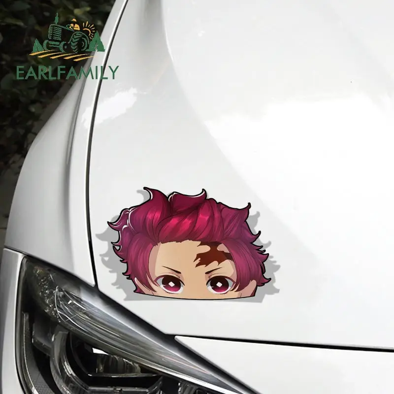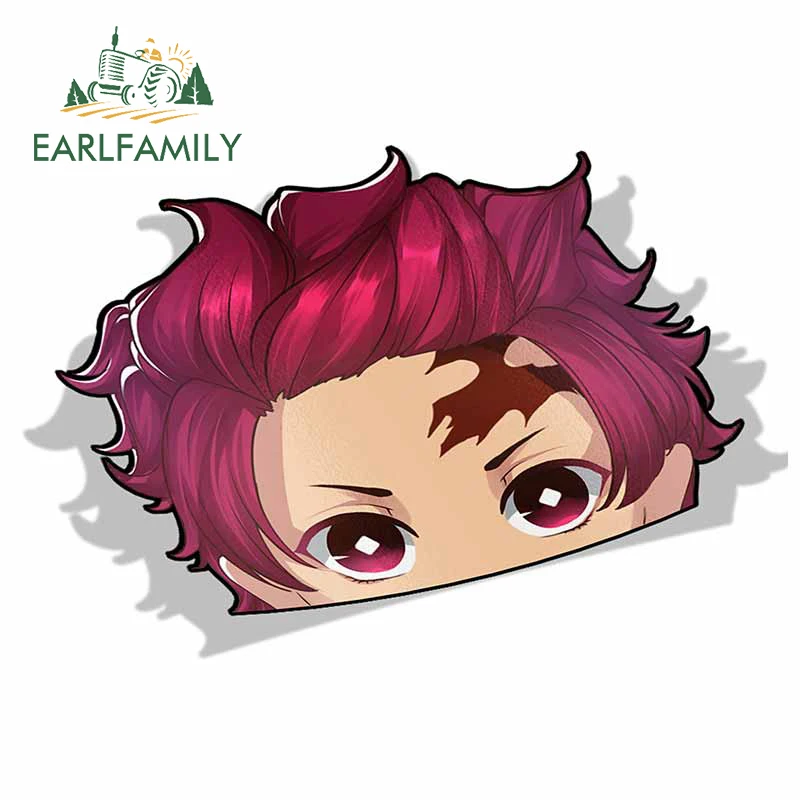 EARLFAMILY 13 см x 8,9 см для Tanjiro Demon Slayer Peek аниме большая голова Виниловая наклейка для автомобиля JDM Окно Наклейка на багажник автомобильные аксессуары