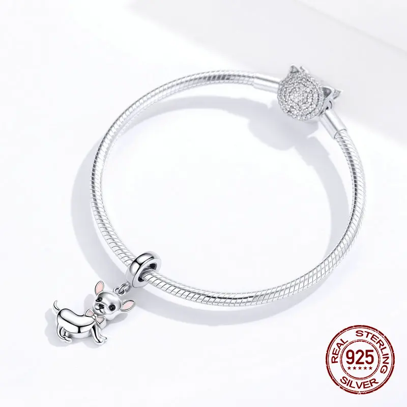 Auffik, подвеска из настоящего серебра 925 пробы для чихуахуа, ожерелье с кулоном размером 3 мм, браслет, шарм, оригинальные Подвески для изготовления ювелирных изделий
