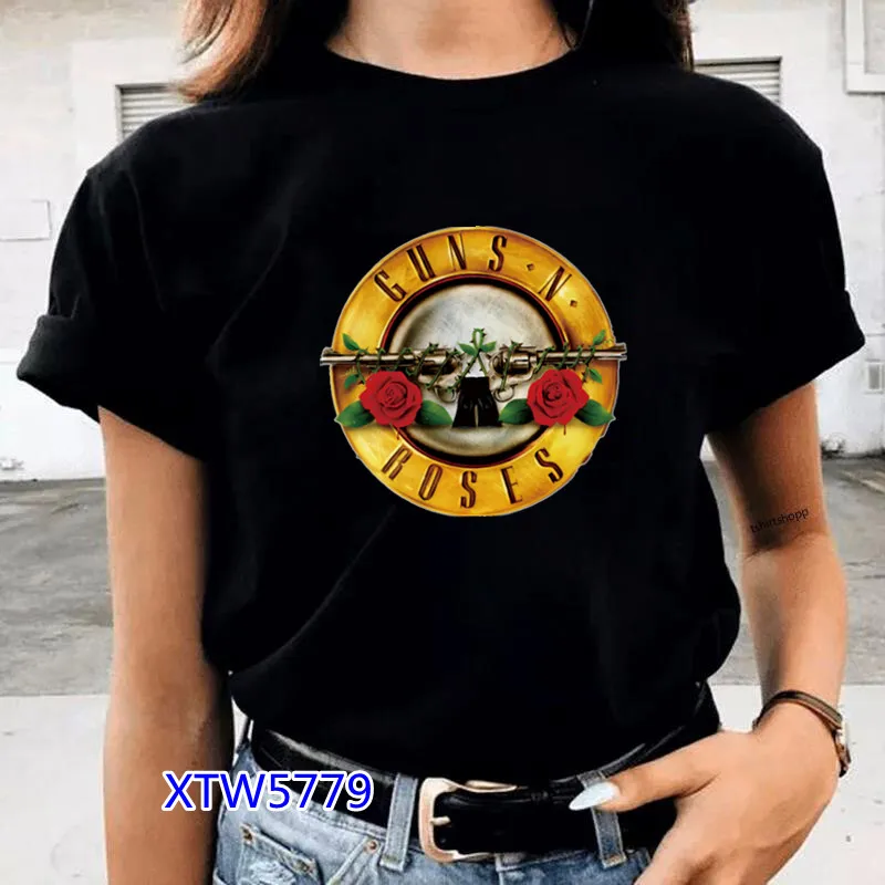 Женская футболка с принтом GUNS and рок-группа, розы, летняя футбол...