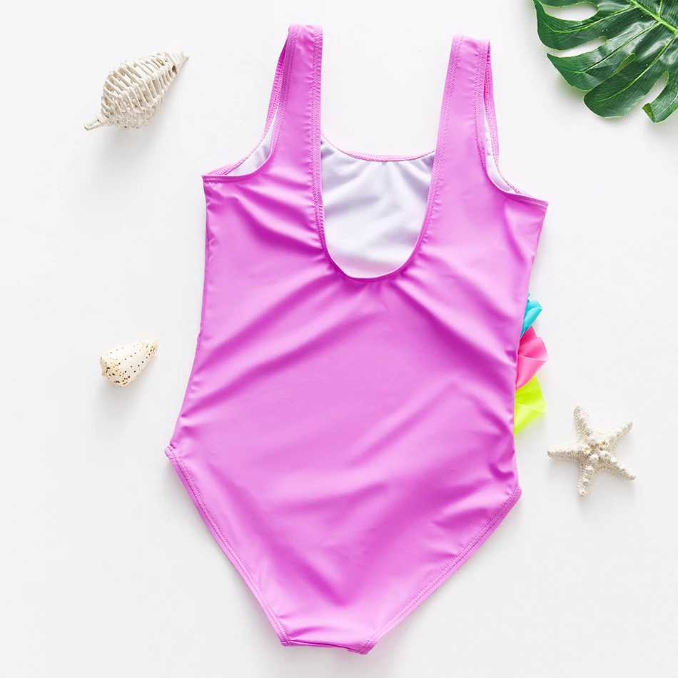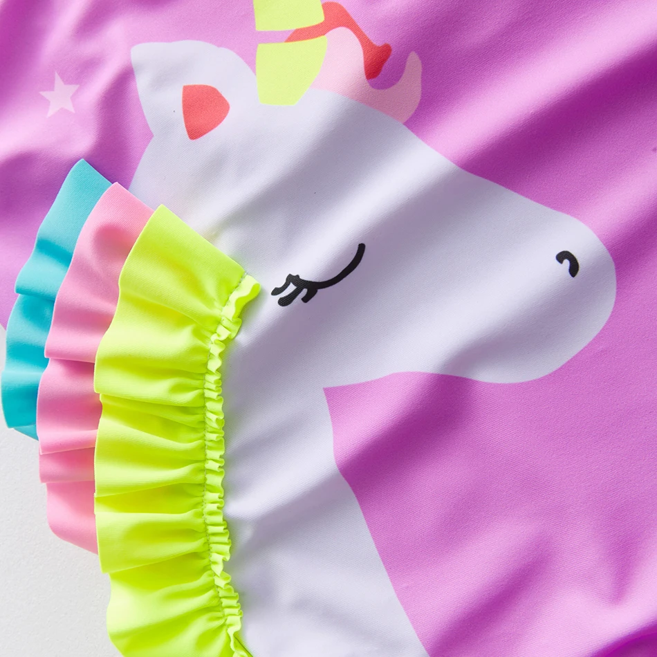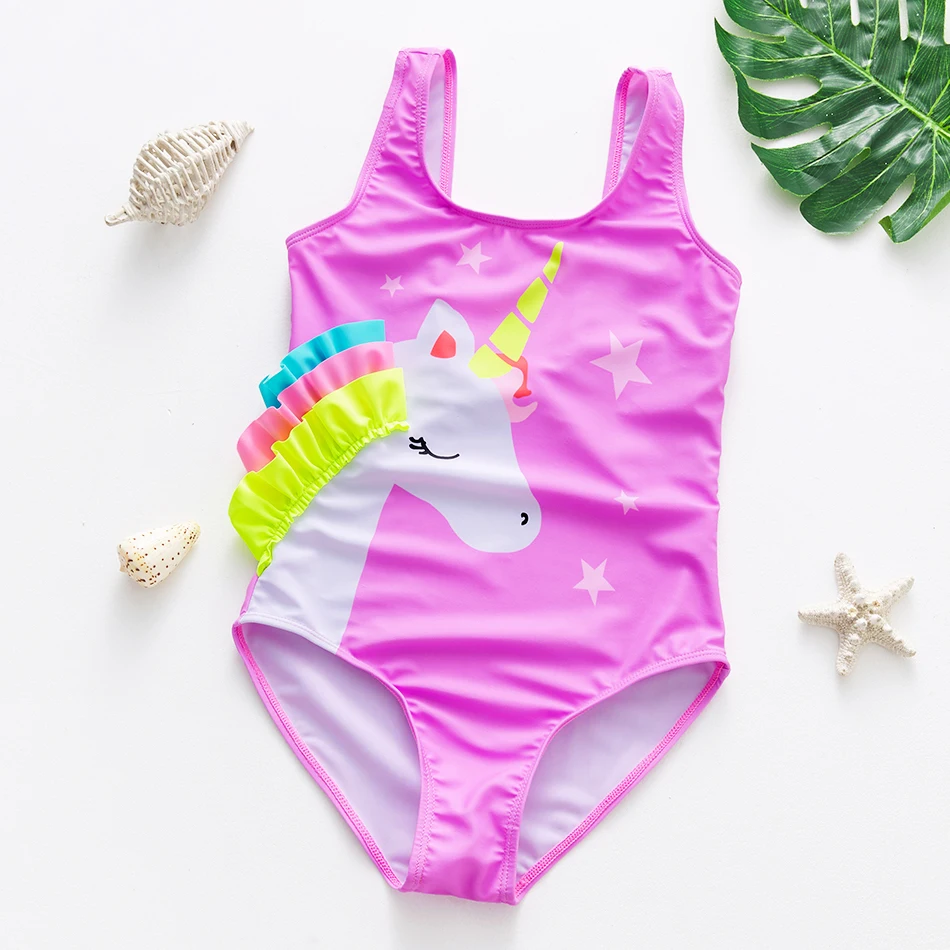 Купальники для девочек, слитные, фиолетовые, 2021, 3-10 лет, купальные костюмы для девочек, детские купальники, купальник с единорогами