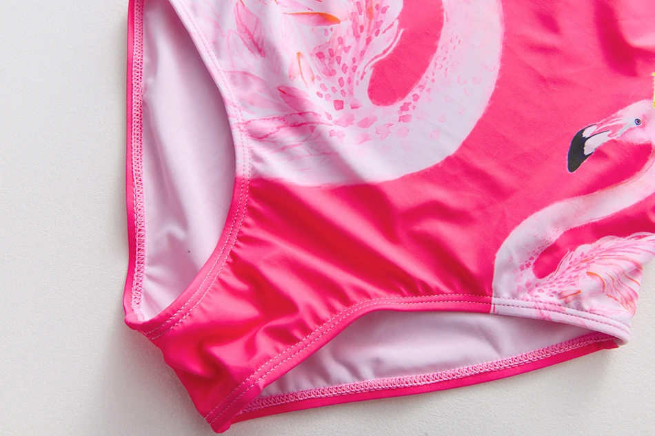 Детский слитный купальник для девочек, с принтом фламинго и оборкам...