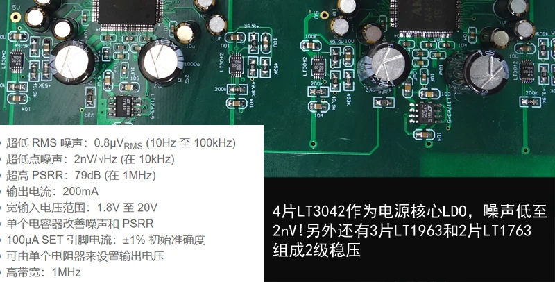 В настоящее время выход LPF обновлен до MUSES03 super high-end op amp, самого высокого класса op amp в серии MUSE. Звук очень реальный, естественный, и человеческий голос милый. Коэффициент конверсии достигает 35 в на микросекунду, что значительно превосходит MUSE02 и MUSE01, не говоря уже о дешевой LME49860. Часть IV-OPA1612, а преобразование искажений равно 0.000015%!