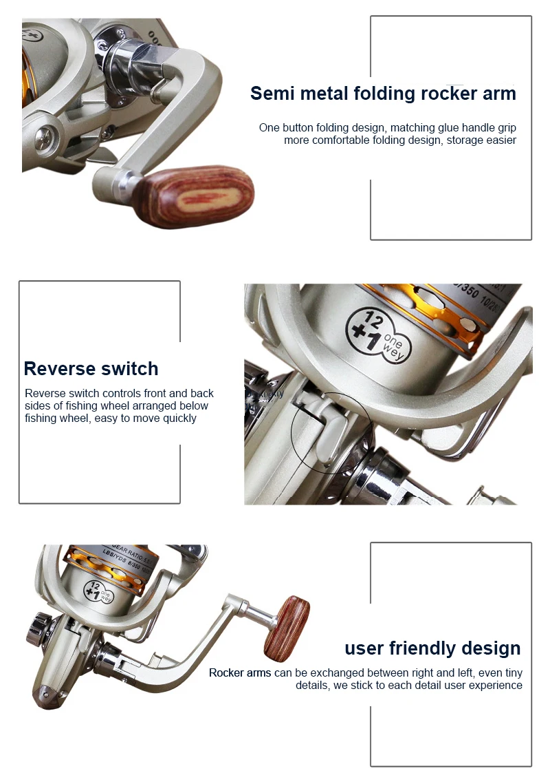 Катушка рыболовная 1000-7000 5,5: 1 12 + 1 BB, металлическая проволочная чашка, деревянная ручка, спиннинговая катушка для карпа, Аксессуары для рыбалки, полностью Металлическая складная Rock
