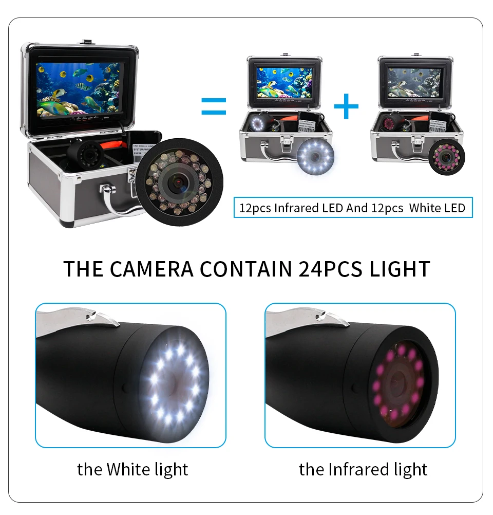 Видеокамера Erchang DV3524HD для подводной рыбалки с 12 инфракрасными светодиодами и 12 белыми светодиодами для подледнойморской рыбалки