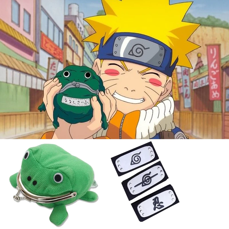 Аниме лягушка кошелек повязка на голову Косплей костюмы Аксессуары Реквизит PU крутой головной убор боль Гаара орочимару Какаши повязка на голову 90 см