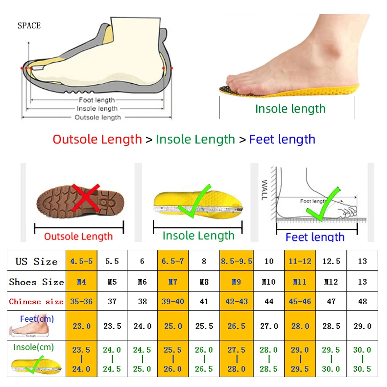 3.Согласно длине стельки, вы можете узнать длину своей стопы, а затем выбрать правильный размер.