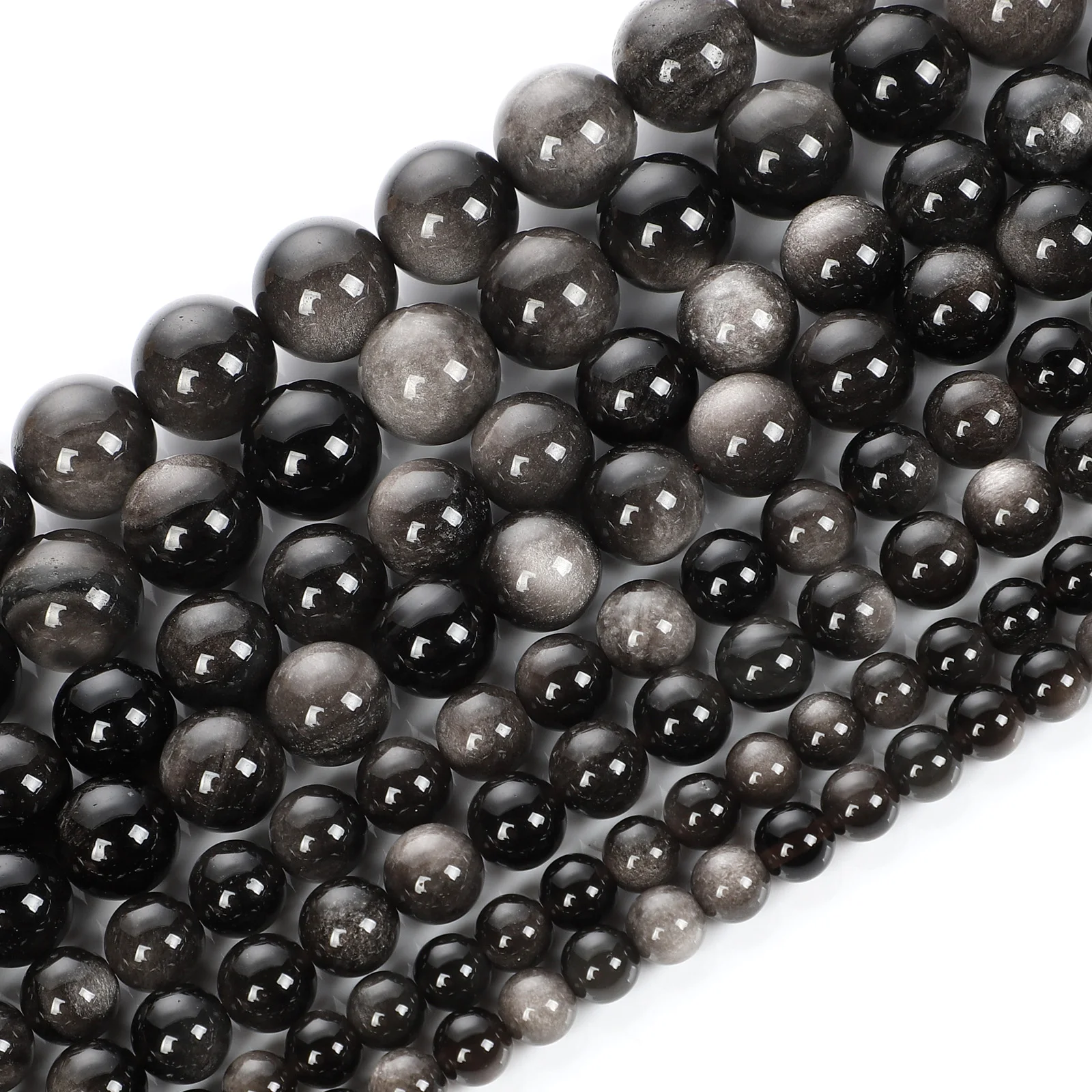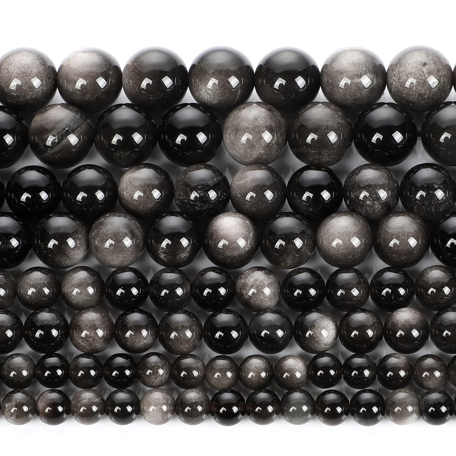 Серебристые обсидиановые бусины