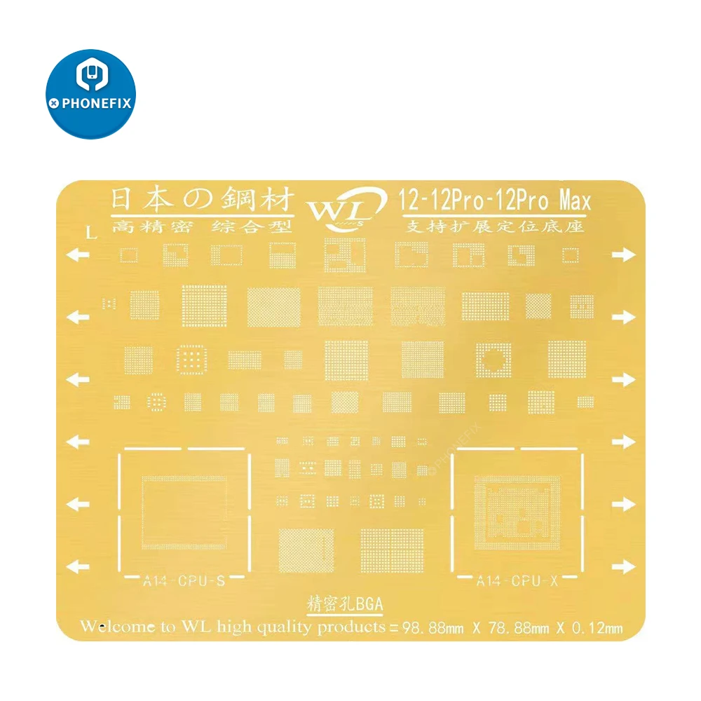 WL A8 A9 A10 A11 A12 A13 A14 BGA Reballing Gold Stencil Plant Tin Mesh для iPhone 566S6SP77P88PXXSXSMAX11 12pro max