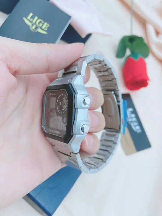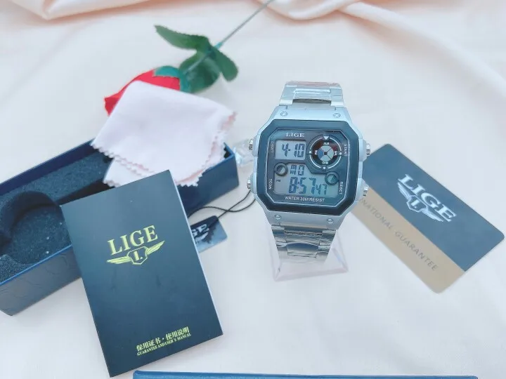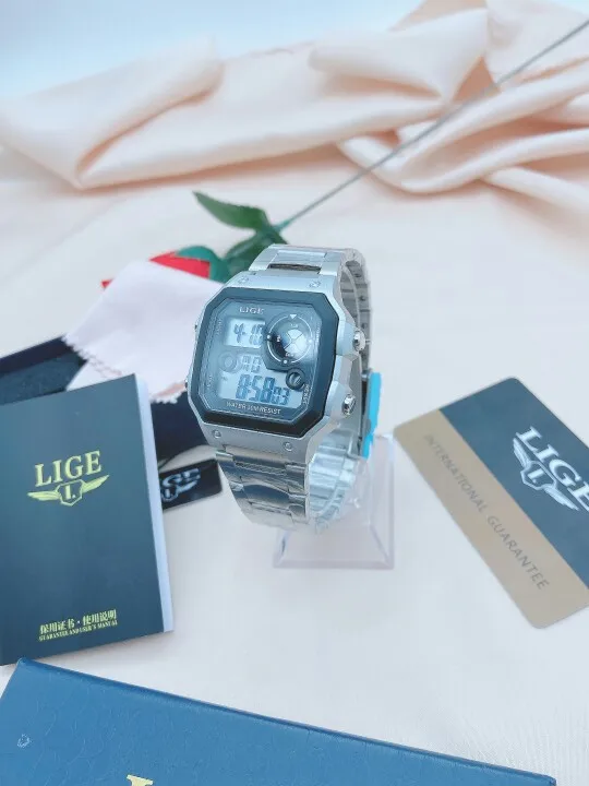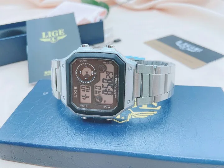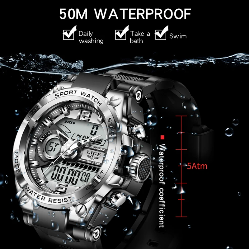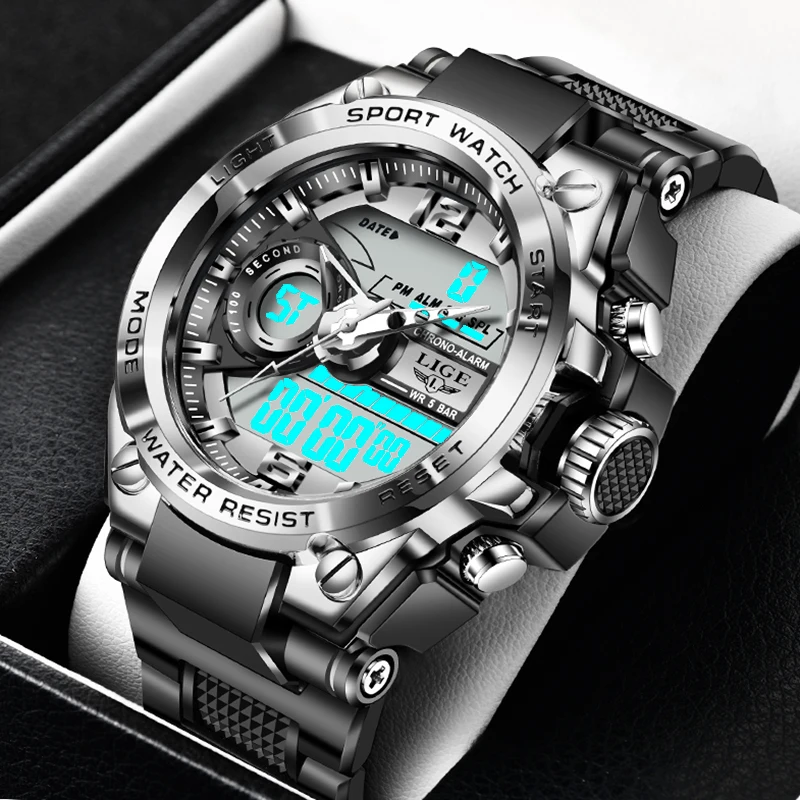 Часы наручные LIGE Мужские кварцевые цифровые, спортивные креативные водонепроницаемые с будильником, с двойным дисплеем, для дайвинга, 2022