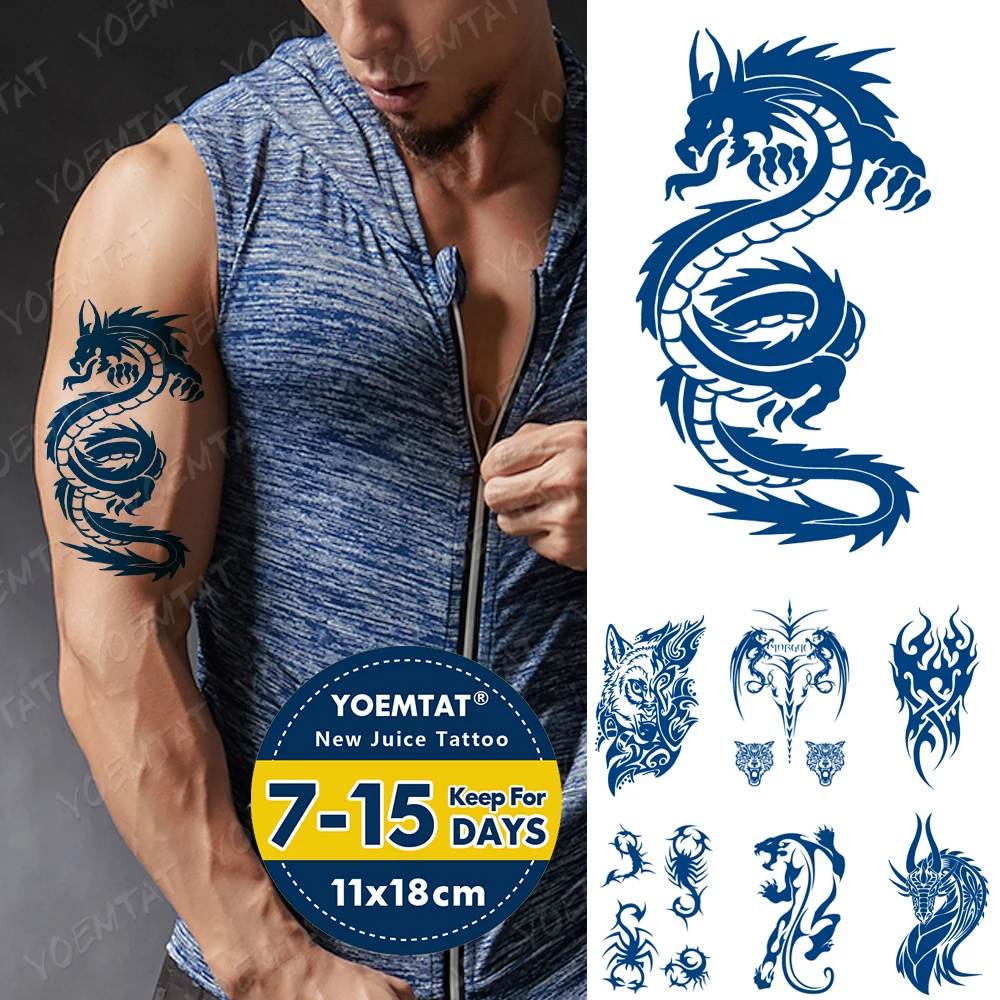 Водостойкая временная татуировка Juice Ink, водостойкая, тотем дракона, волк, тигр, пламя, флэш-татуировки, Мужская рука, боди-арт, поддельные татуировки