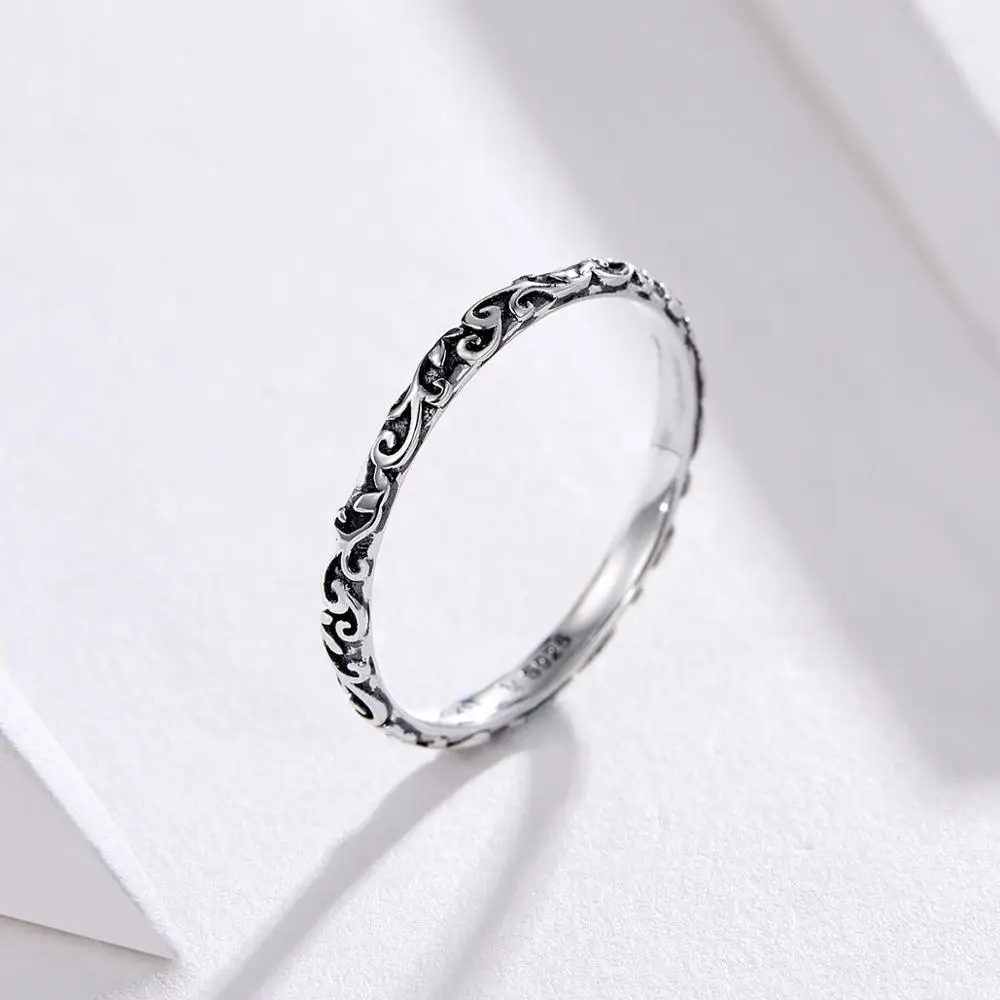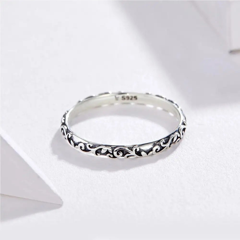 Womak натуральная 100% 925 пробы серебра с выгравированными винтажными узорами черного цвета из тибетского серебра унисекс подходит кольцо ювелирные изделия подарок ко Дню Святого Валентина