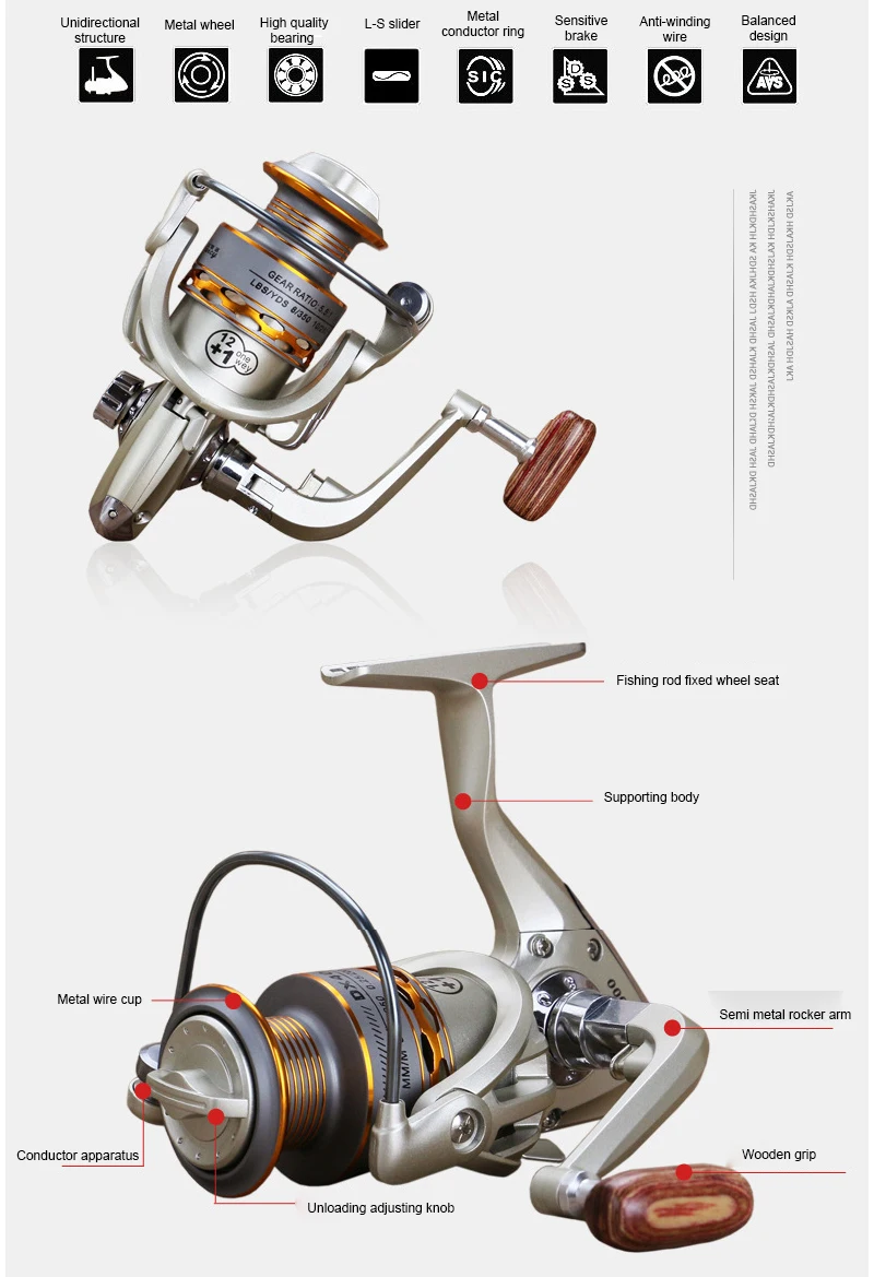 Катушка для спиннинга, из цинкового сплава, с деревянной ручкой, 12 + 1BB, 1000-7000, 5,5: 1
