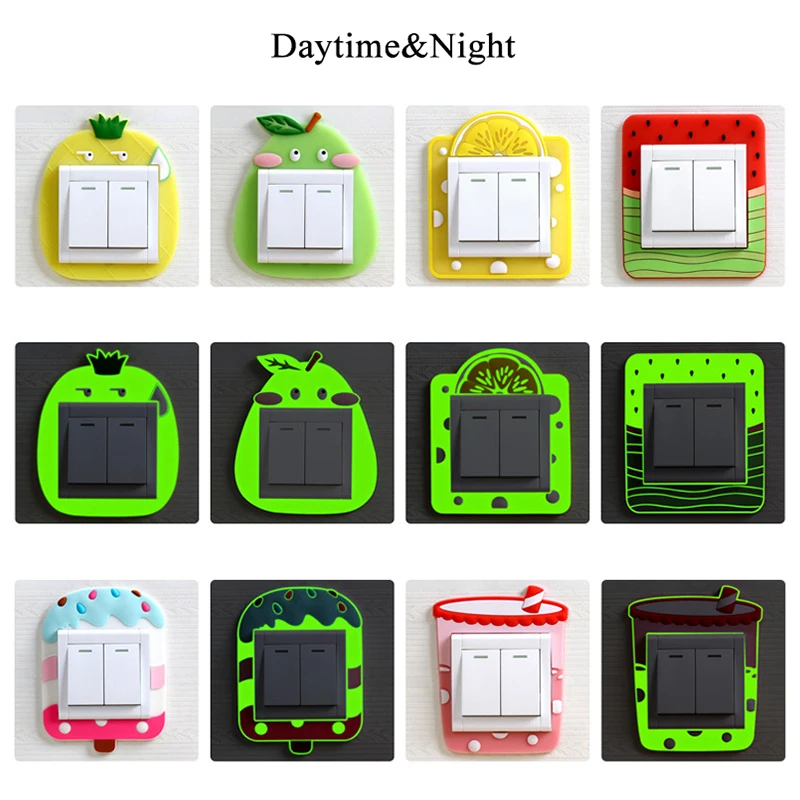 Креативные фрукты защитный чехол для переключателя светящиеся милые наклейки из мультфильмов силиконовые наклейки на стену водонепроницаемые наклейки на розетку
