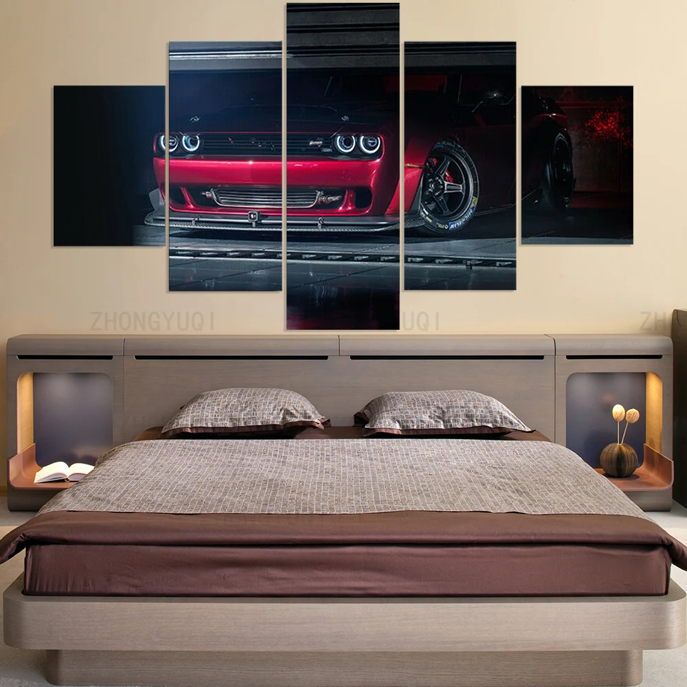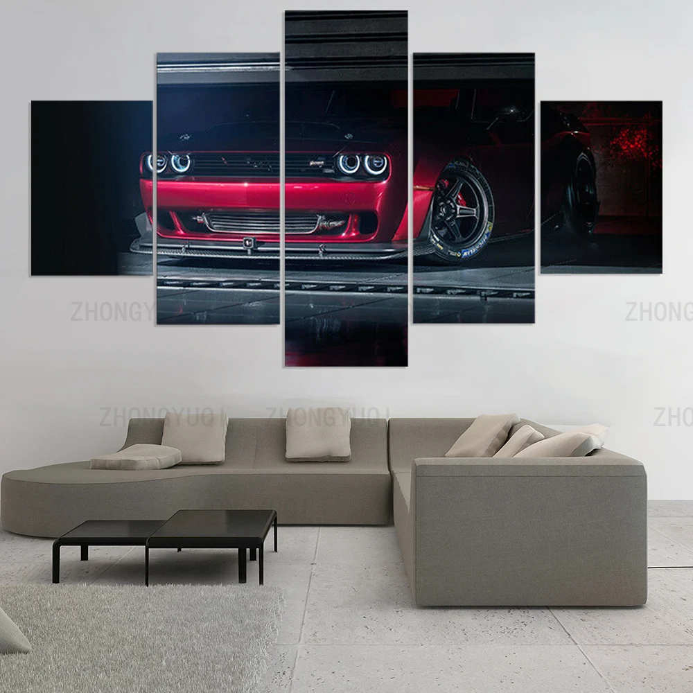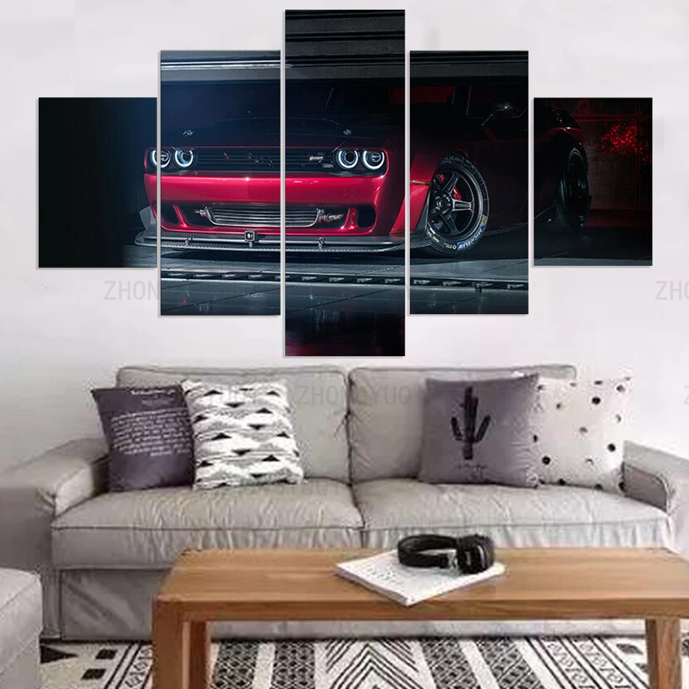 Плакат с изображением автомобиля, Додж Челленджер, SRT, демон, картина, спортивный автомобиль, домашний декор, настенные художественные принты для украшения гостиной, 5 шт.