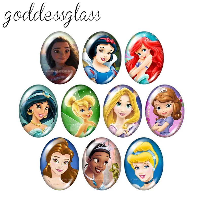Диснеевские принцессы, Tiana Sofia, 10 шт., смешанные, 13x1, 8 мм18x24 мм, 5 мм30x40 мм, овальные фотографии, кабошон, плоская задняя часть, браслеты, фурнитура для изготовления
