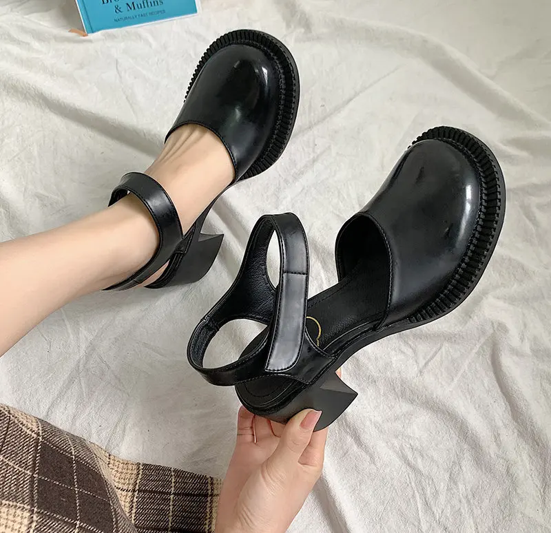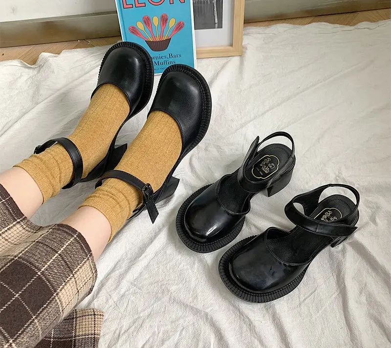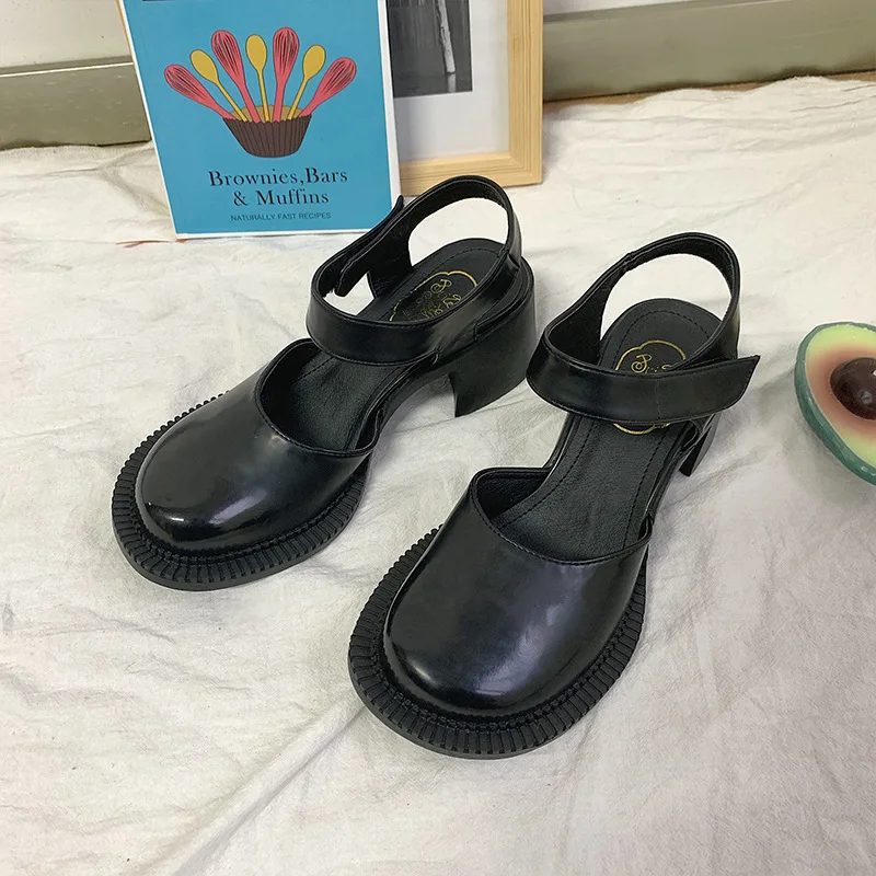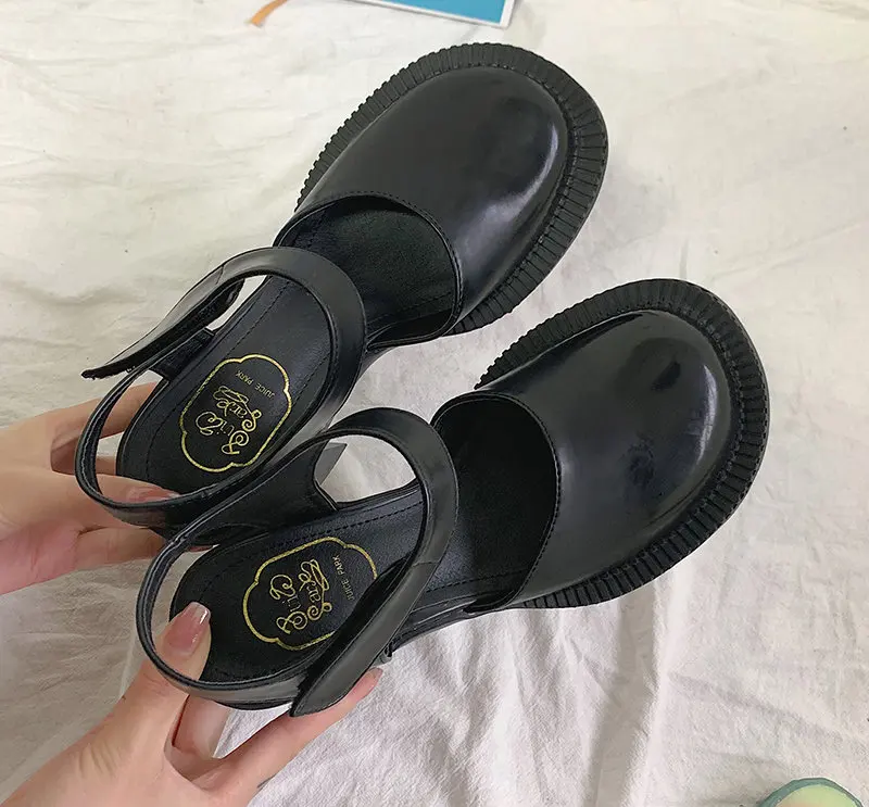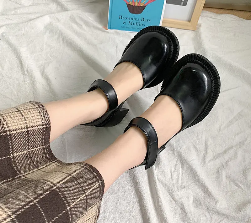 Kawaii/обувь в стиле Лолиты; Обувь на не сужающемся книзу массивном каблуке; Женские туфли-лодочки; Обувь из лакированной кожи на платформе; Женские туфли Mary Jane с круглым носком; Harajuku