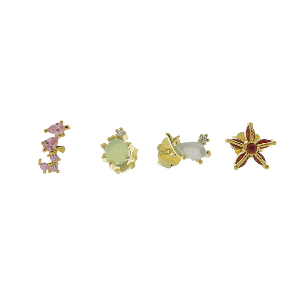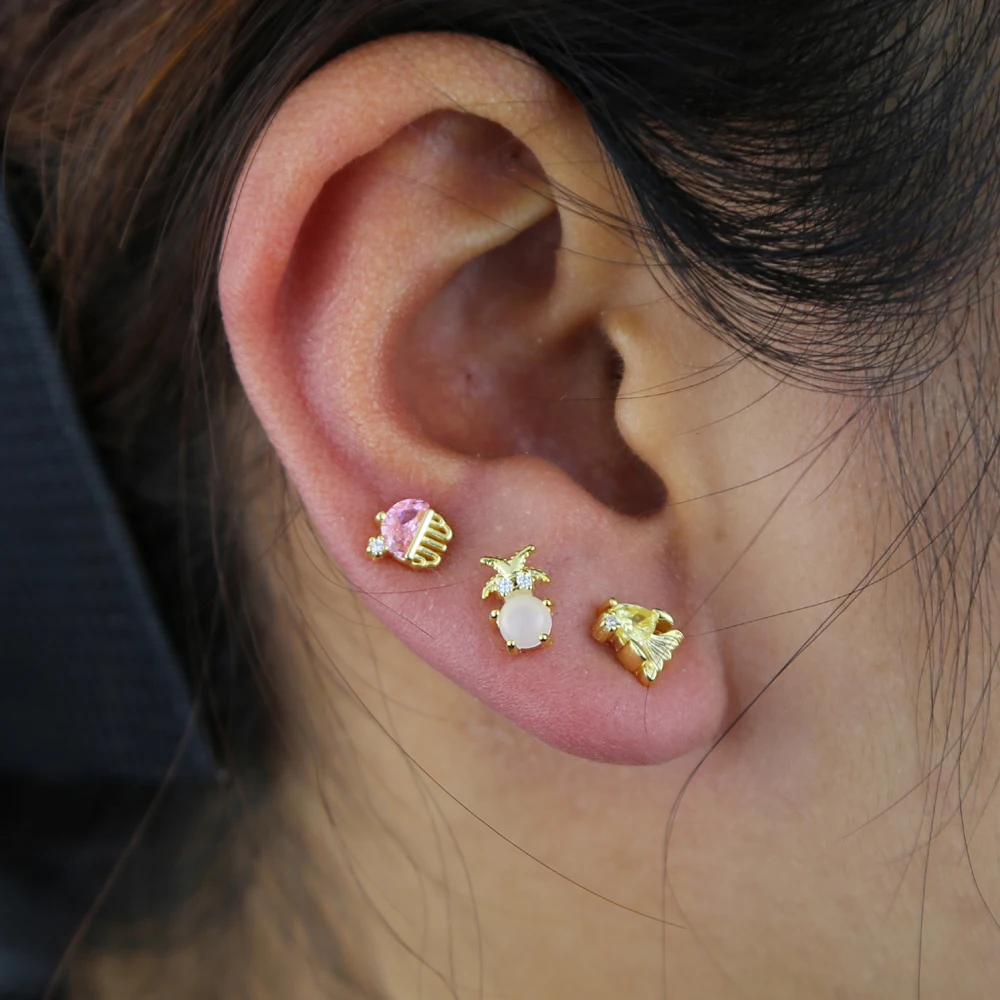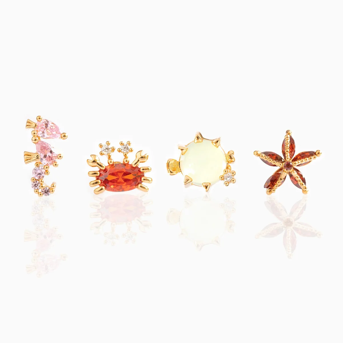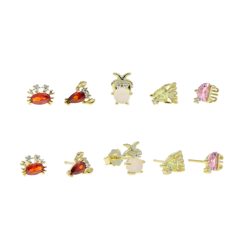 Набор позолоченных сережек-гвоздиков из серебра 925 пробы с изображением морского океана и животных