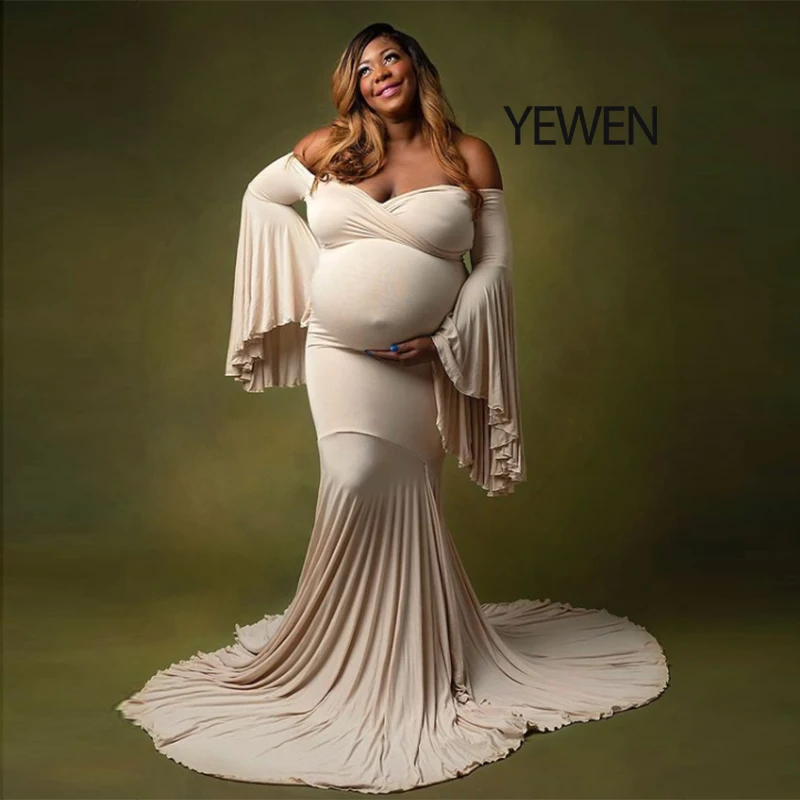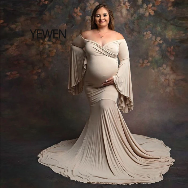 Элегантные платья для беременных с открытыми плечами для фотосъемки...