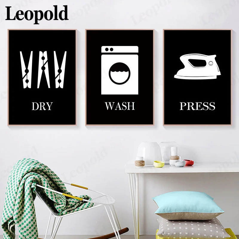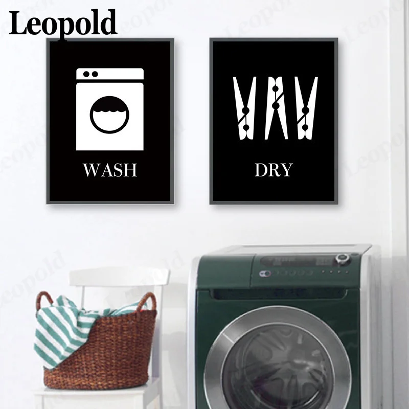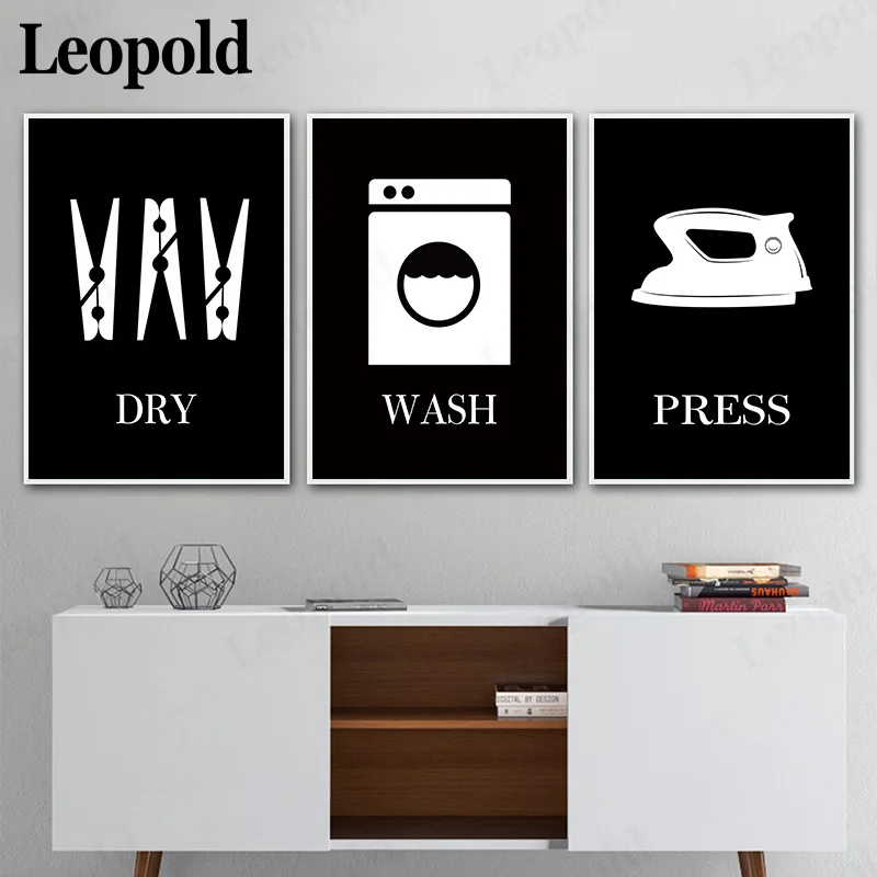 Современный модный холщовый плакат с черно-белыми буквами, простой знак для стирки, настенное художественное украшение для прачечной, ванной комнаты