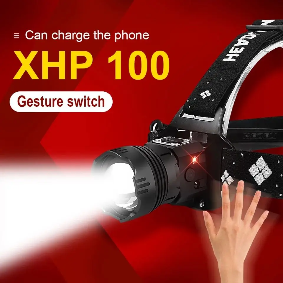 XHP100 ИК Сенсор светодиодные фары 18650 головной фонарь USB Перезаряжаемые мощный налобный фонарь XHP90 Масштабируемые Рыбалка фонаря ламповый патрон Фонари