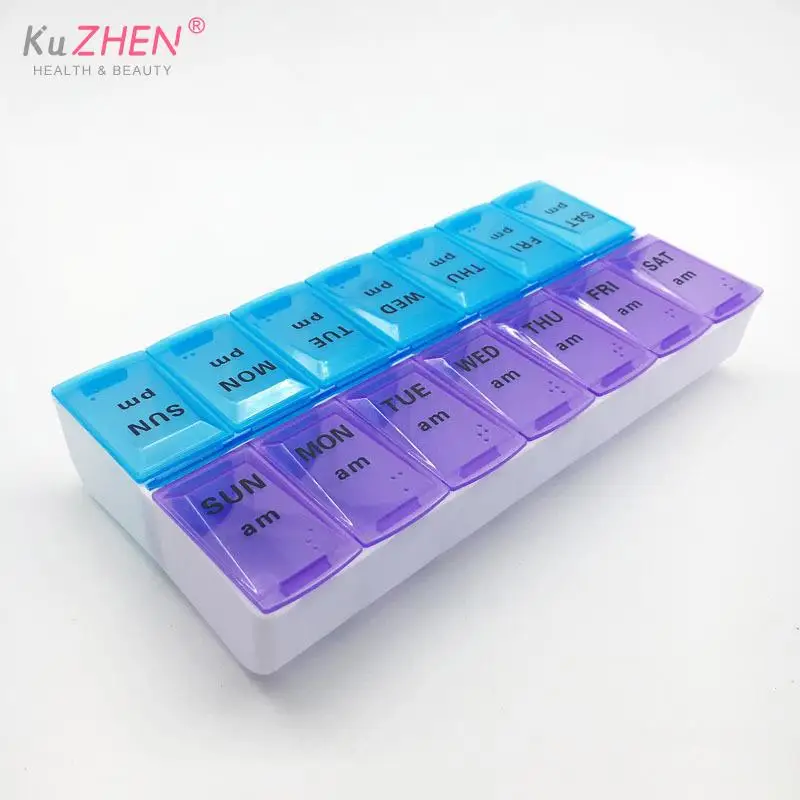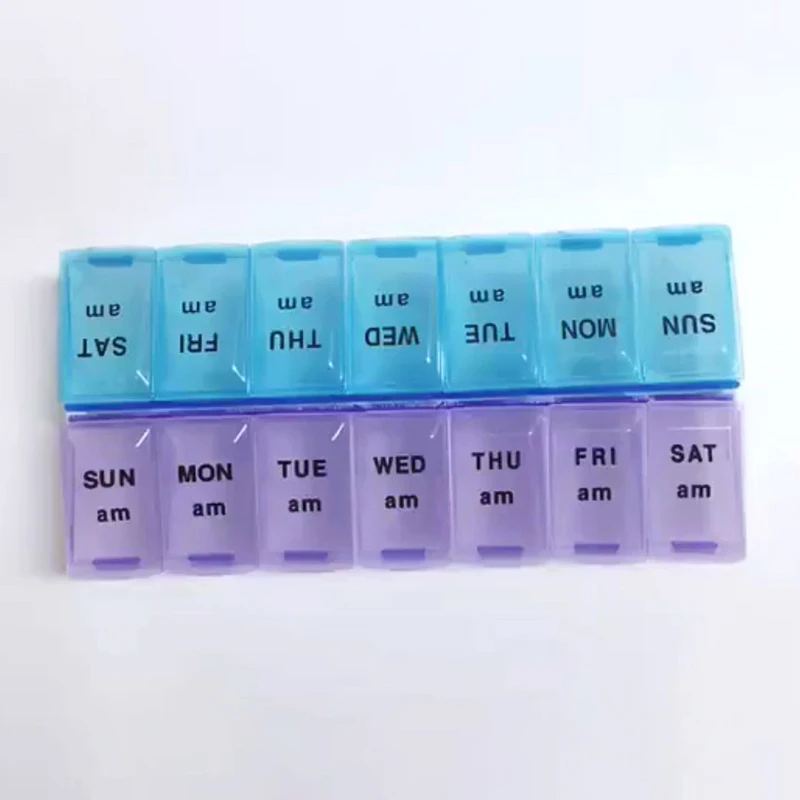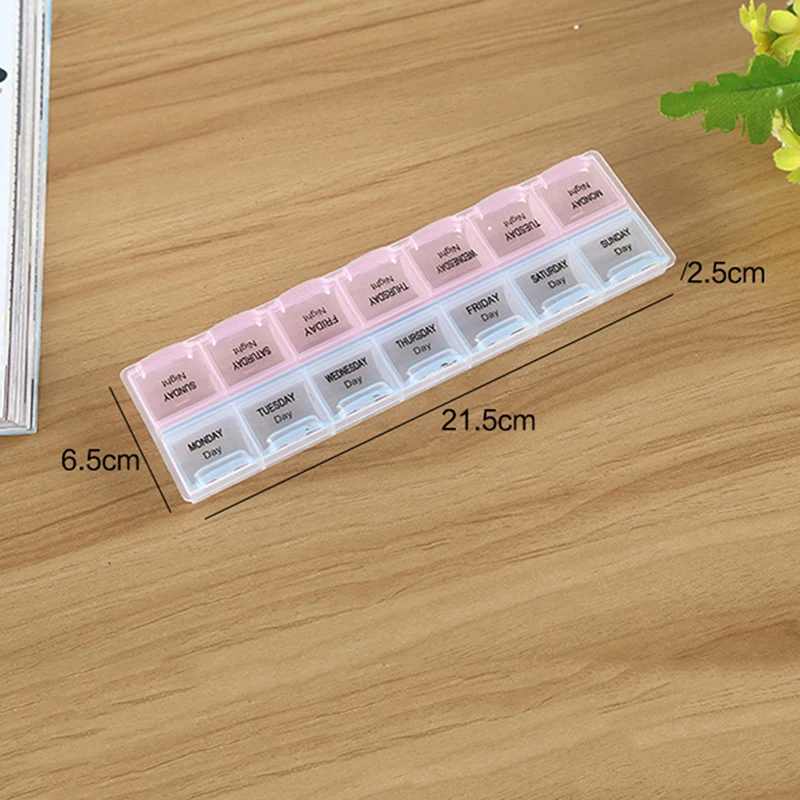 Контейнер для таблеток на 7 дней, на неделю, с 14 отделениями, портативный дорожный органайзер для лекарств диспенсер для таблеток, контейнер для хранения таблеток