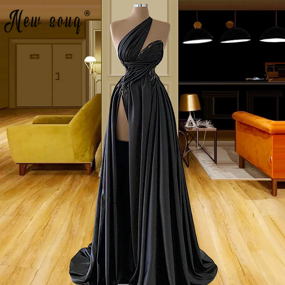 Горячие черные женские вечерние платья на одно плечо, изготовленные...