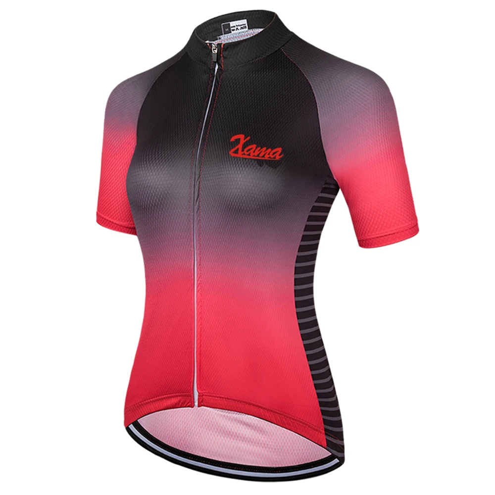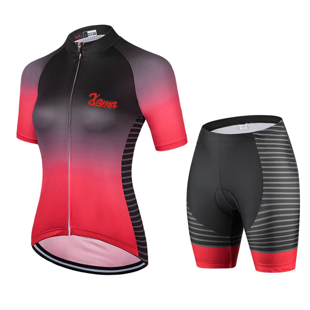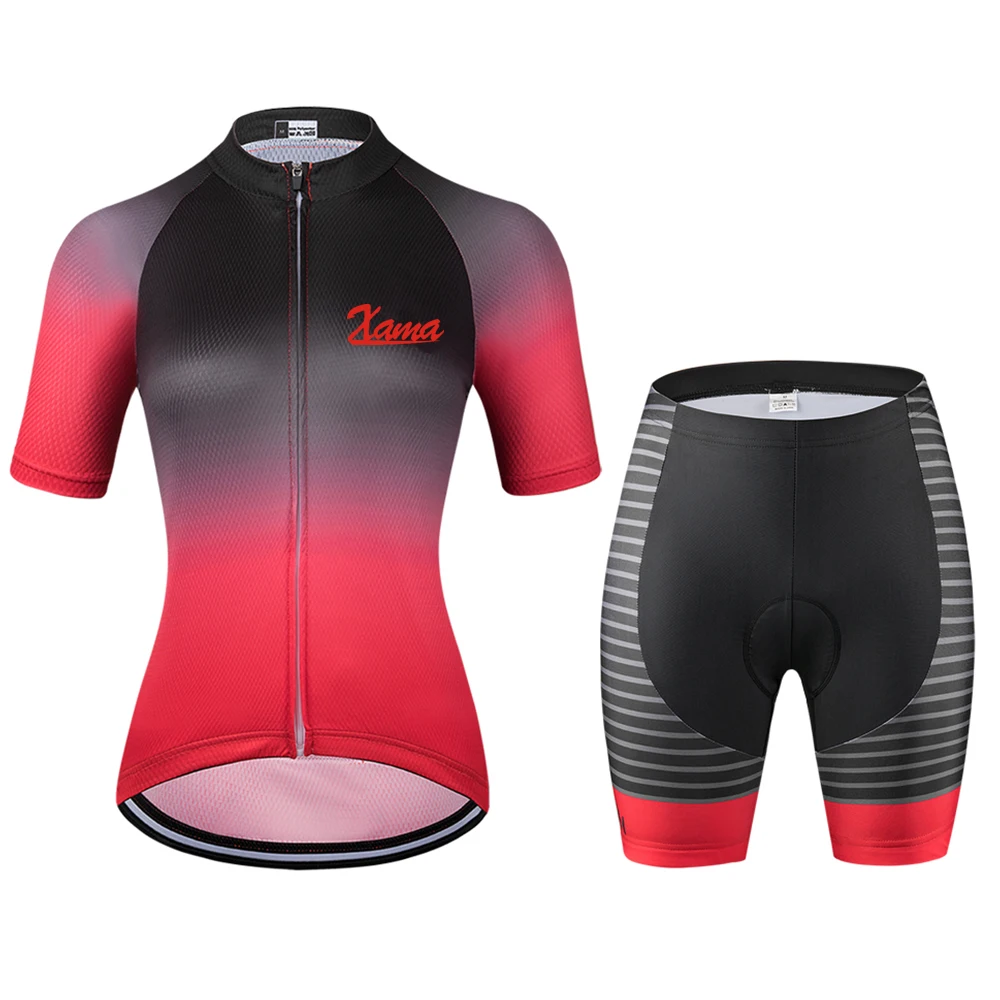 2021Xama Pro женские черные красные градиентные цвета с коротким рукавом велосипедные Джерси наборы нагрудники брюки комплект для женщин Mujer Maillot Mujer
