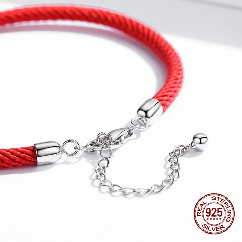 925 серебро очаровательные красные веревочный браслет для Женская мода Регулируемый браслет ювелирные изделия девушке подарок на свадьбу