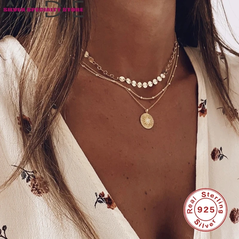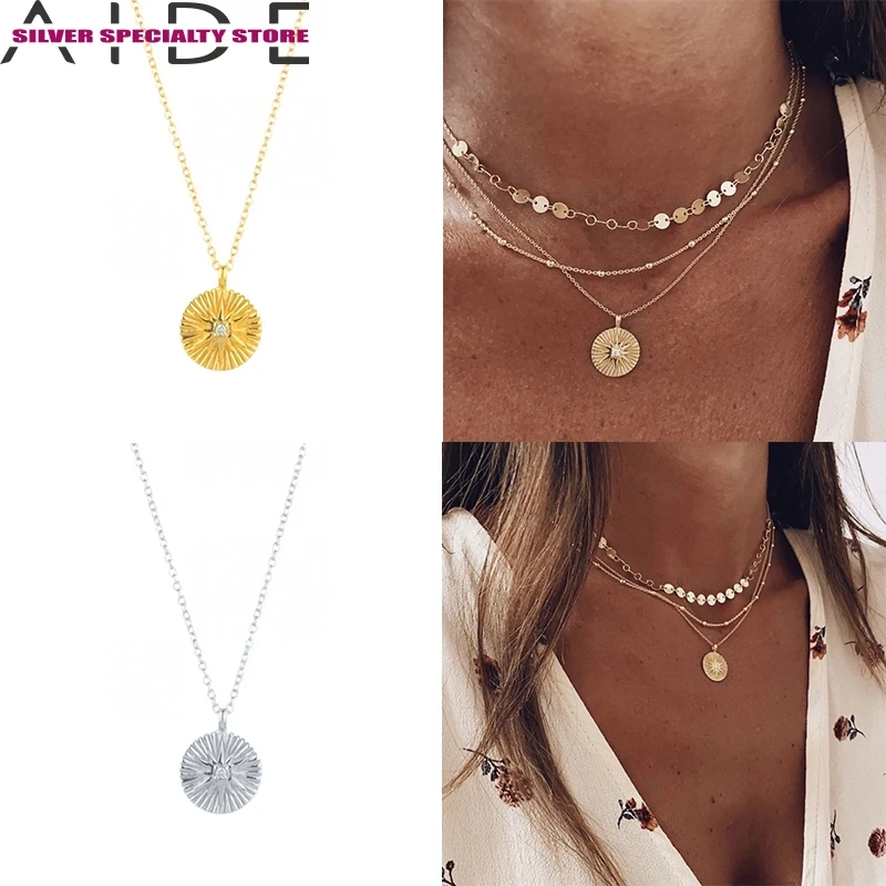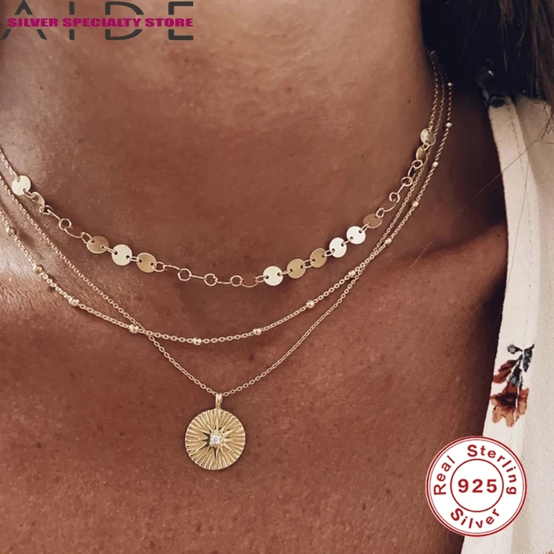 Женское колье с круглой подвеской AIDE, ожерелье из стерлингового серебра 925 пробы, вечерние ювелирные изделия