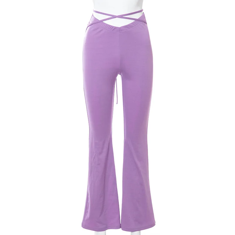 Женские брюки-клеш с завышенной талией, однотонные облегающие брюки для активного отдыха, 2021