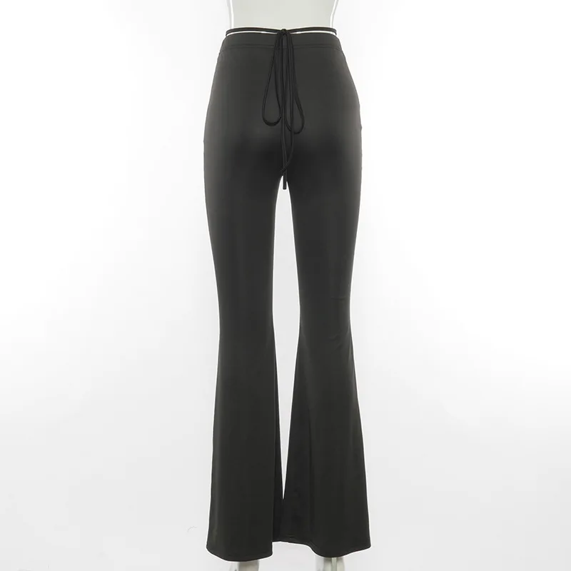 Брюки-клеш Женские, с высокой талией, черные, на шнуровке, 2021