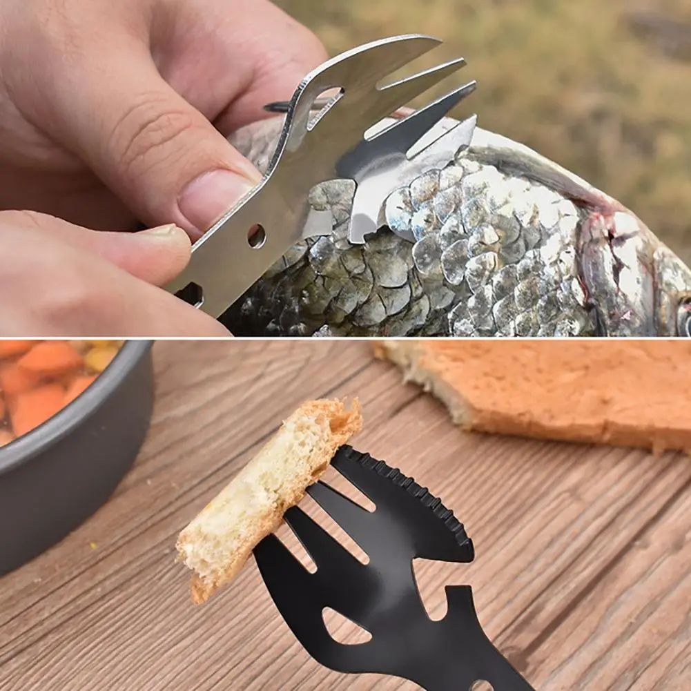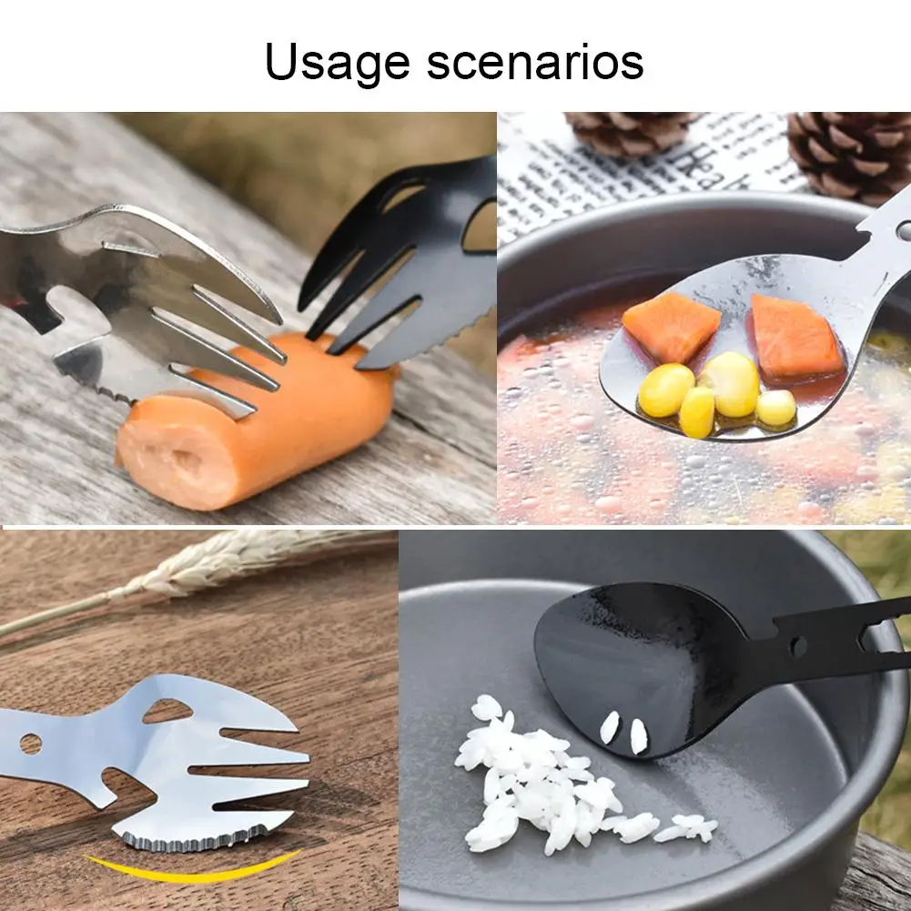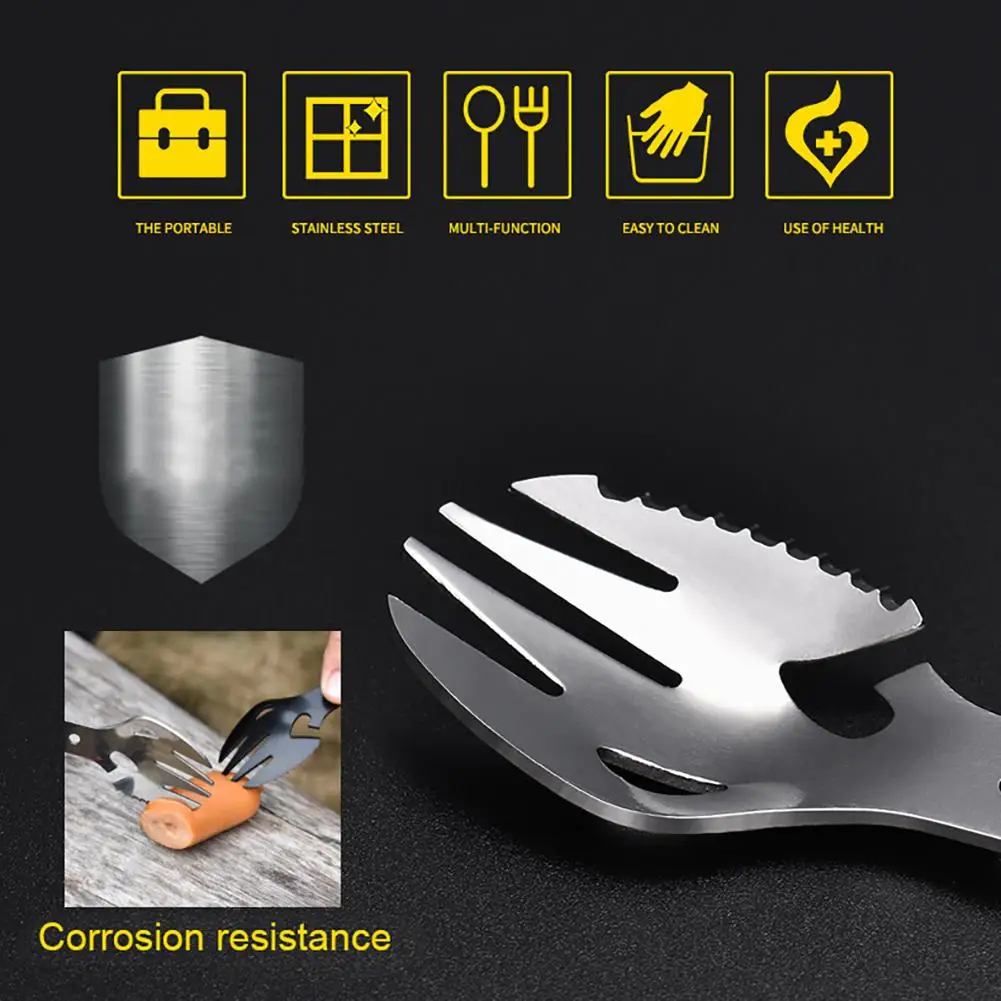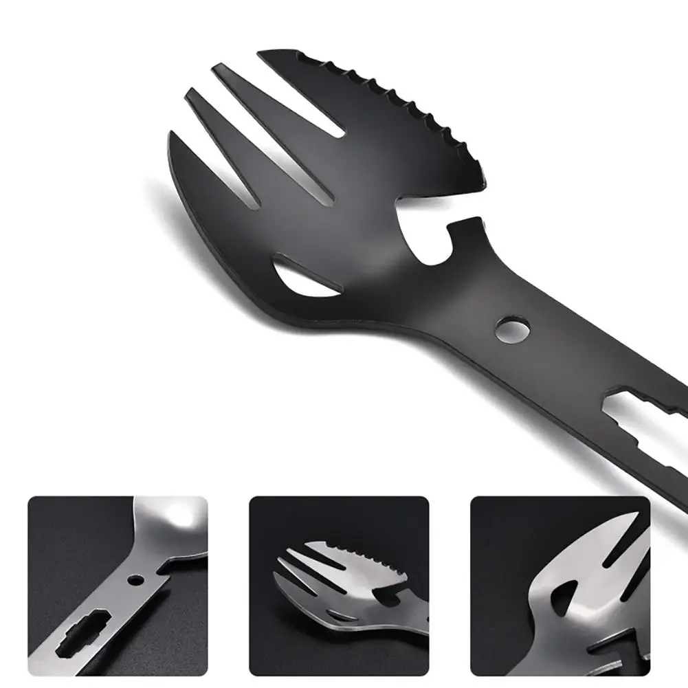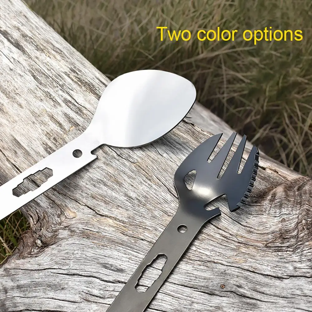 6 в 1, многофункциональная походная кухонная посуда, ложка, вилка, открывалка для бутылок, портативный инструмент, безопасность, выживание, прочные вспомогательные инструменты из нержавеющей стали