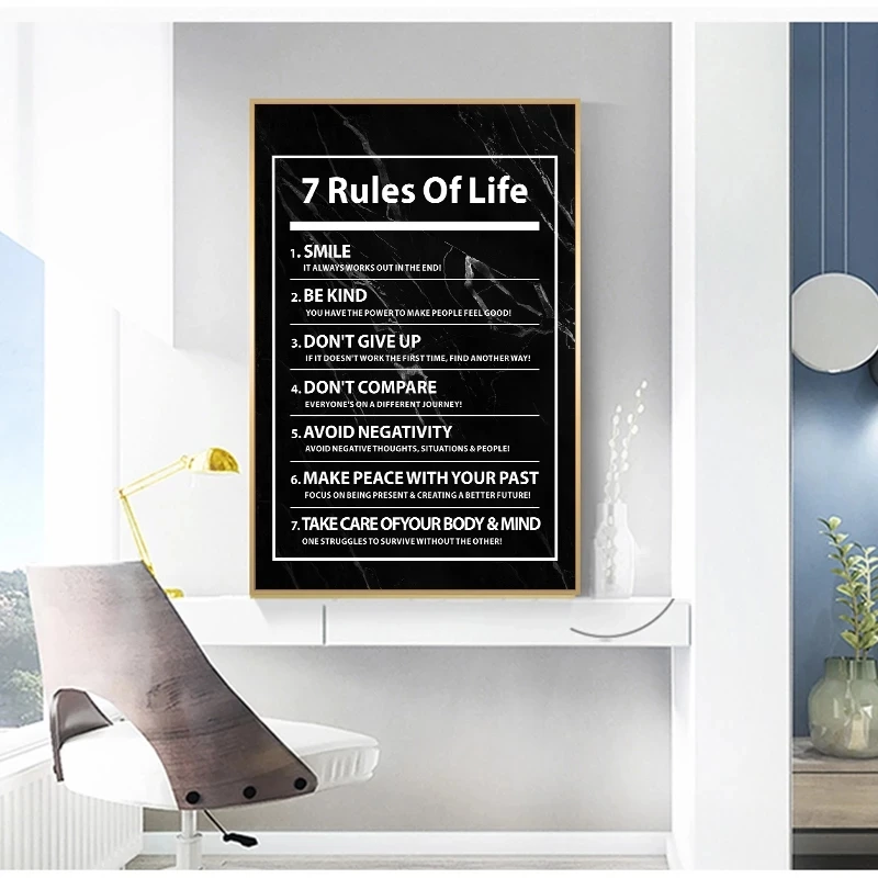 7 правил жизнь письмо Цитата холст Плакаты принты вдохновение холст для живописи Wall Art Изображение офисный Декор