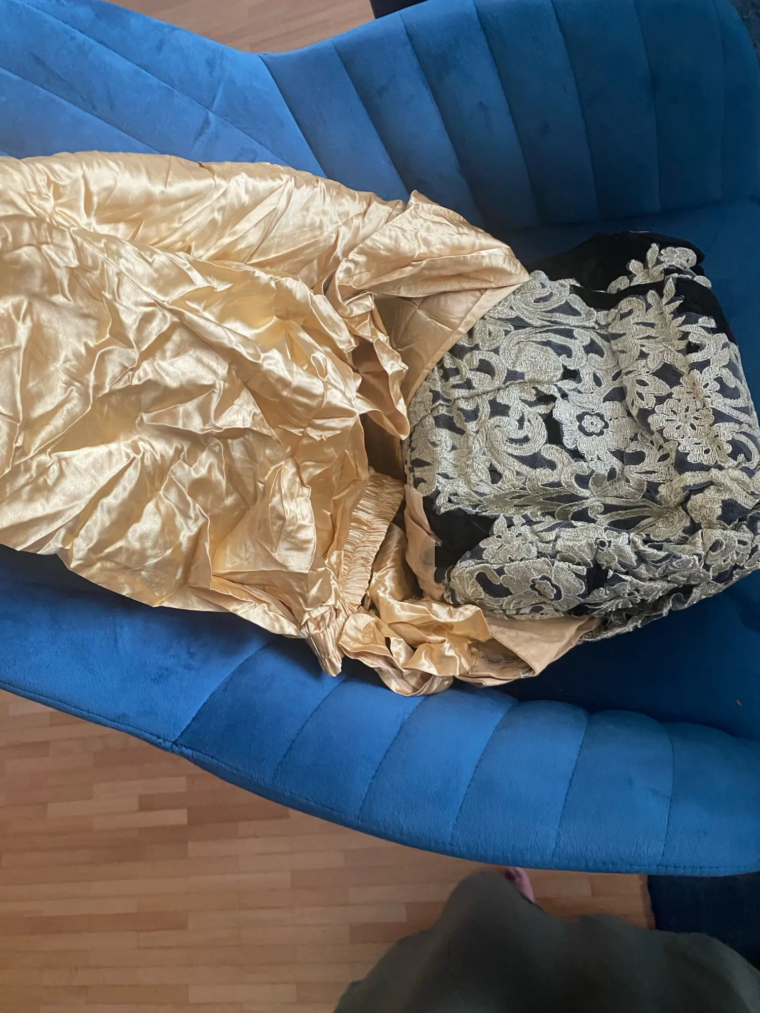 Традиционное вечернее платье, бархатное Золотое кружевное платье с ...