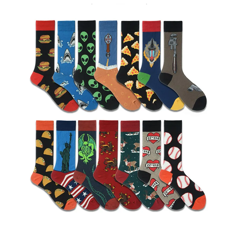 Носки мужские, женские, дышащие, с забавным графическим рисунком, разноцветные, в стиле Харадзюку