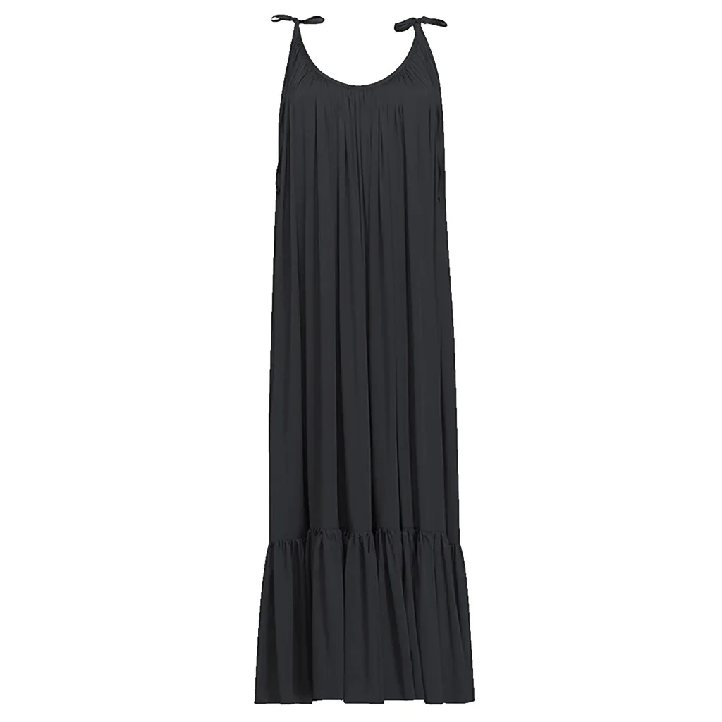 Платье женское на бретелях-спагетти, однотонное длинное вечернее Макси-платье в стиле бохо, без рукавов, с открытой спиной, свободное пляжное платье для вечеринок