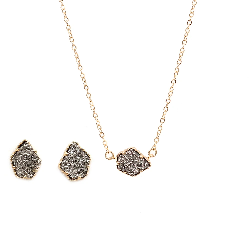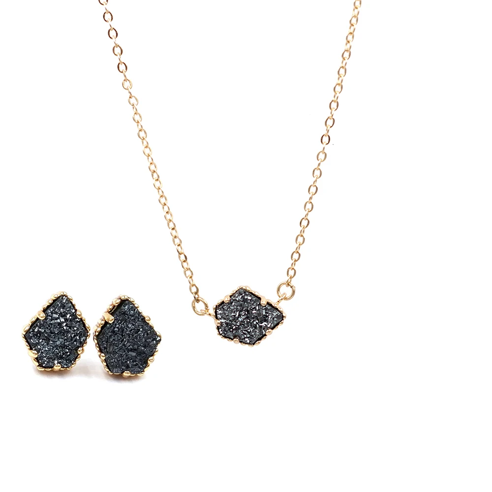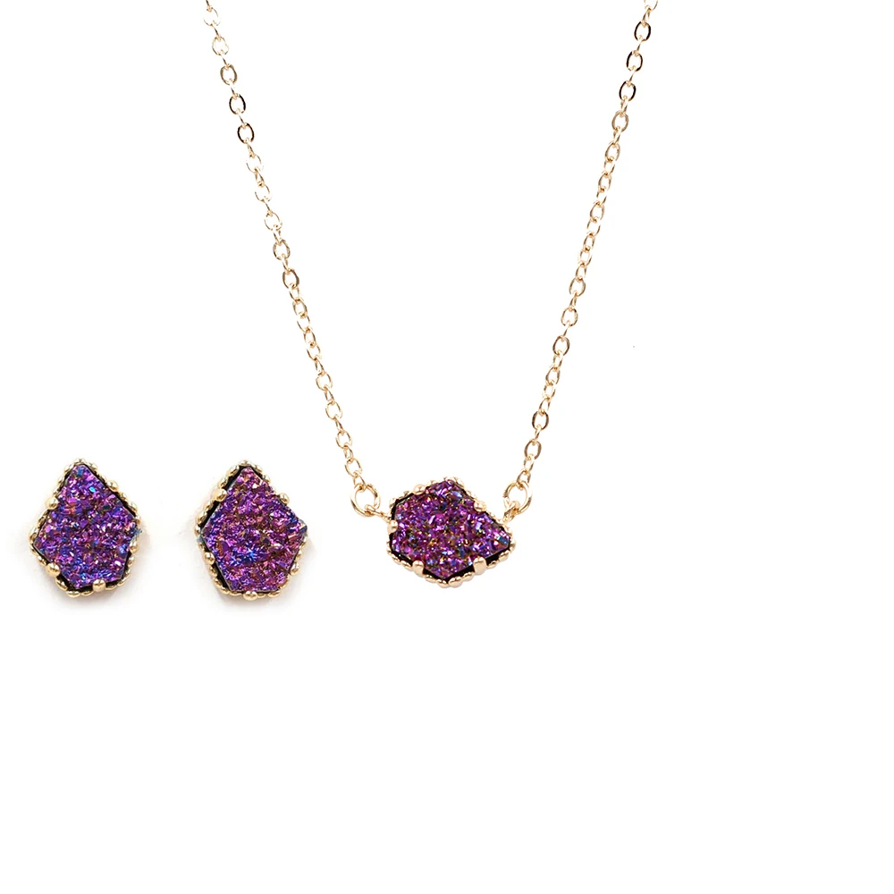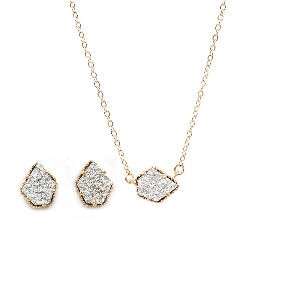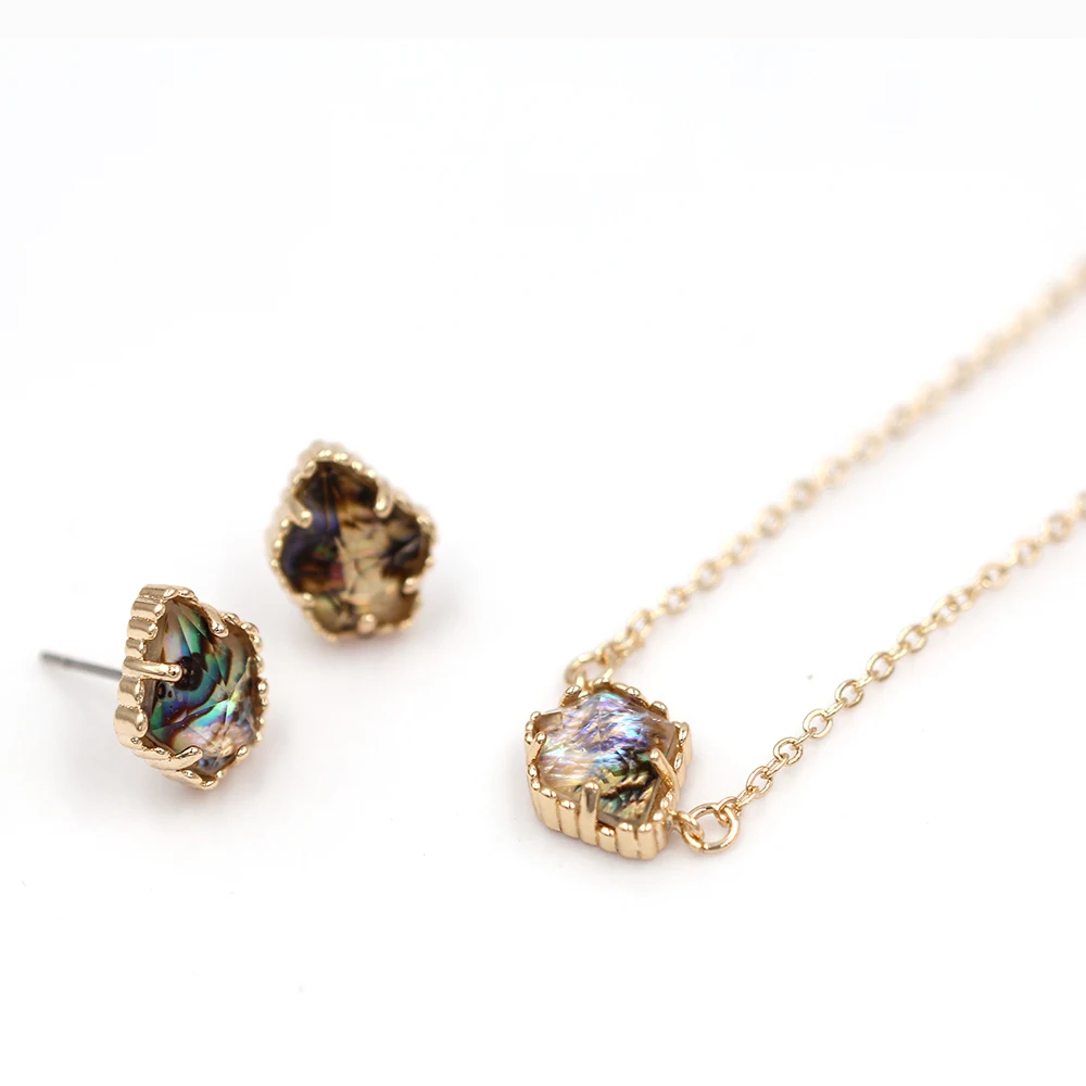 Новинка 2021 года, разноцветные пятигранные серьги-гвоздики и ожерелье с пятисторонними крапанами и драгоценными камнями из смолы, набор ювелирных изделий для женщин